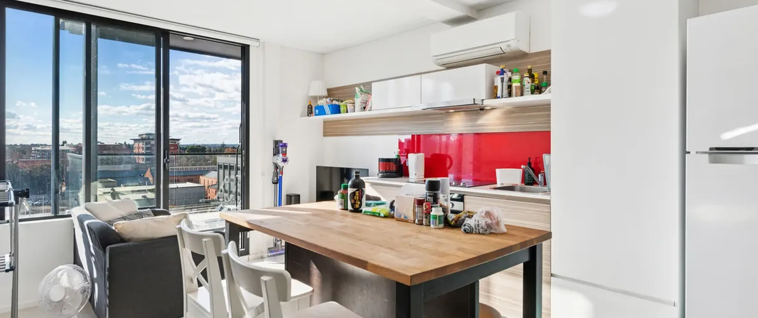 - Spacious, light filled open plan kitchenette, living and meals area with split system air conditioner, seamlessly connecting to the balcony