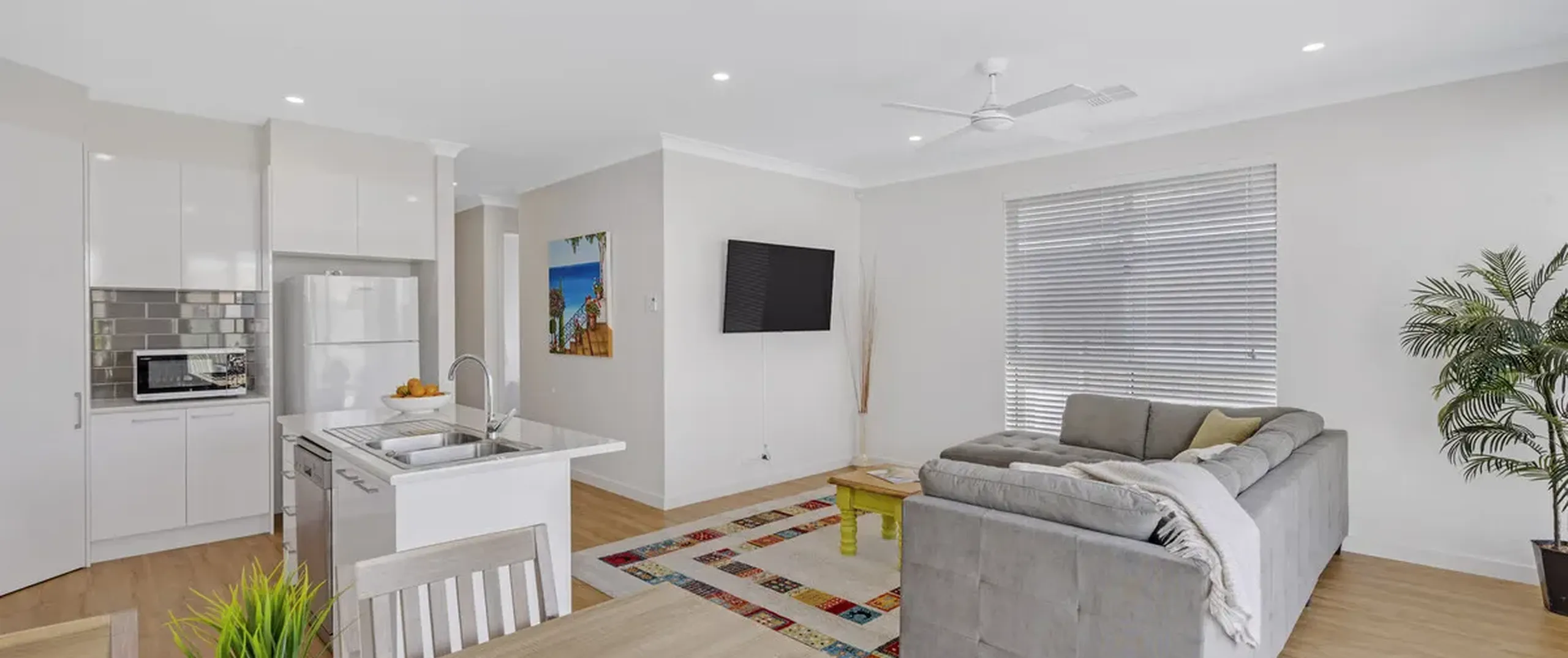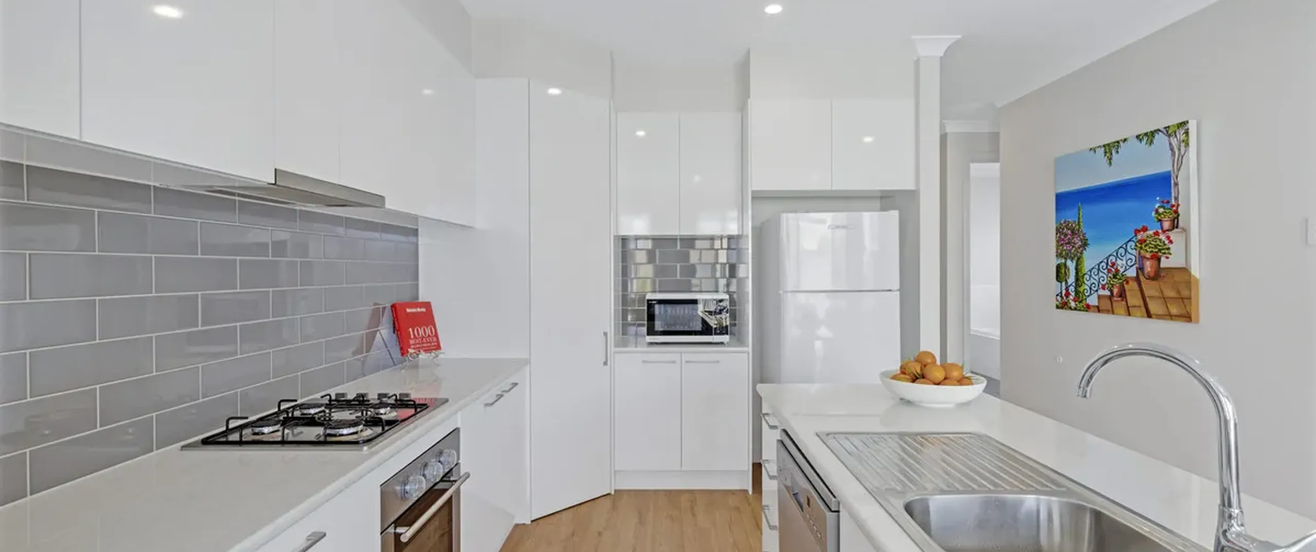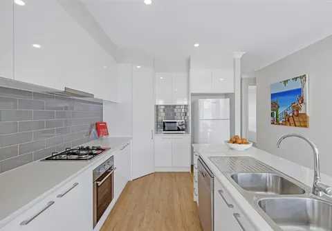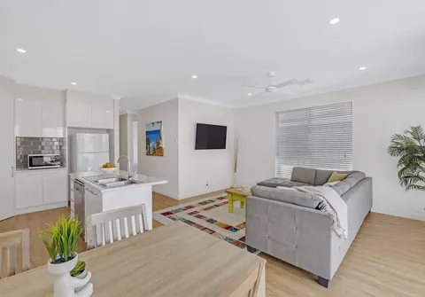 The open plan main living area features a superb modern kitchen, showcasing breakfast bar, high grade appliances, gas stove-top and an abundance of bench space and storage. The highly sought after secondary living area is located at the front of the home and could even possibly be converted into a fourth bedroom (if required).