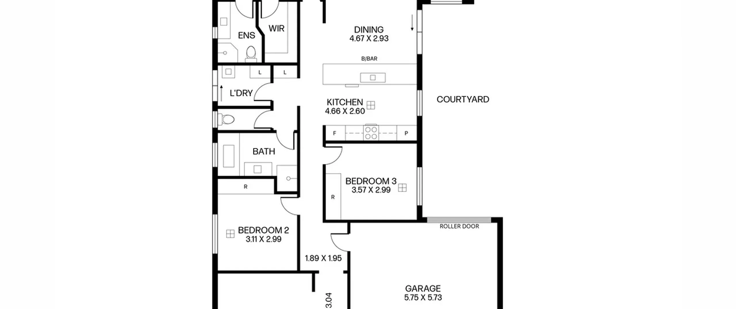 - Light filled open plan dining and living area with doors opening to the backyard and access to the courtyard