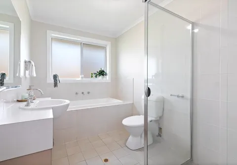 - Contemporary bathroom with bath, shower and toilet