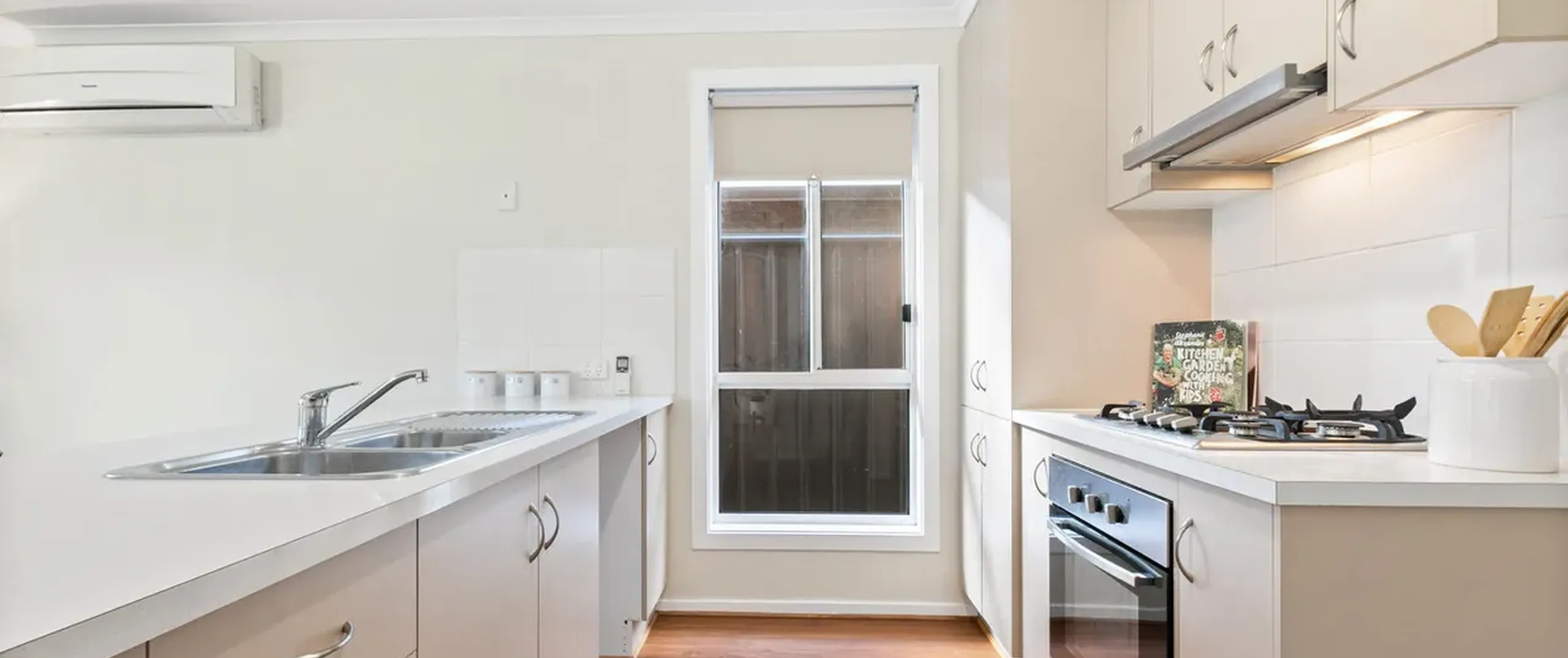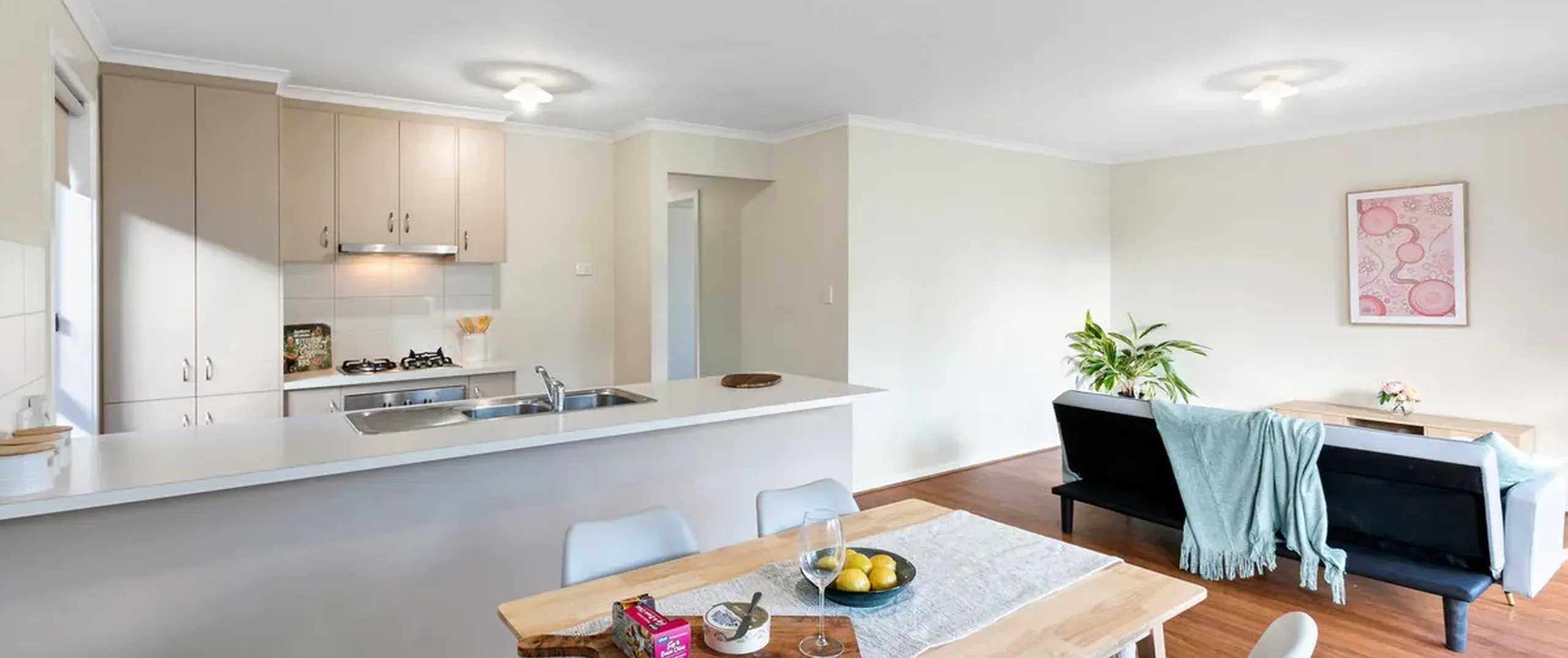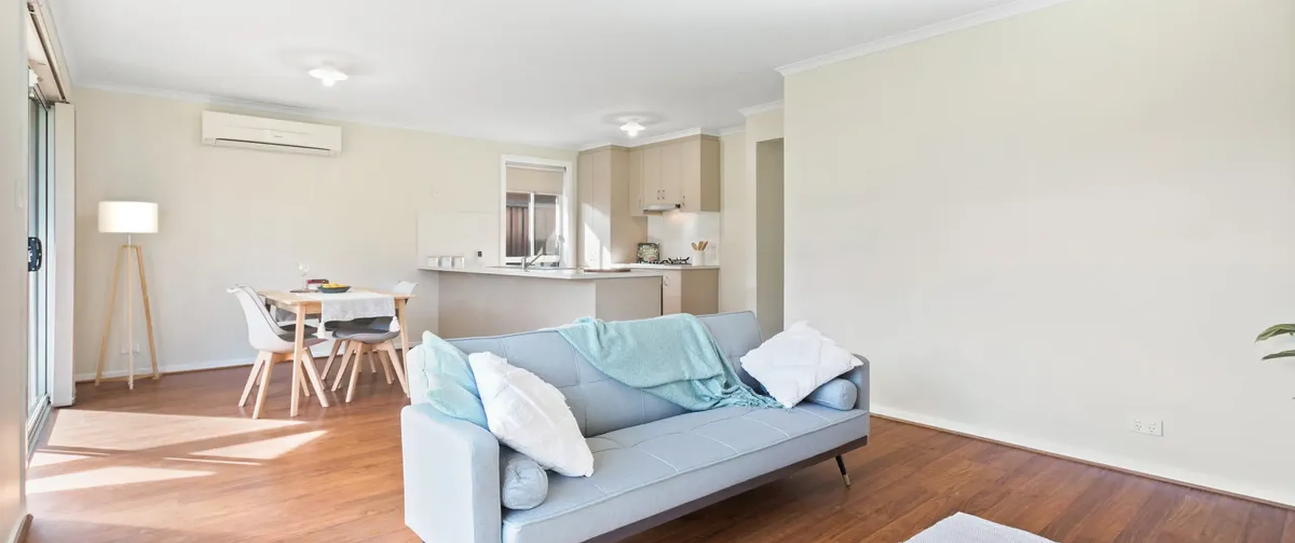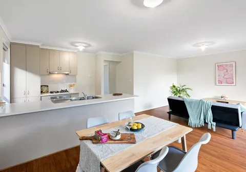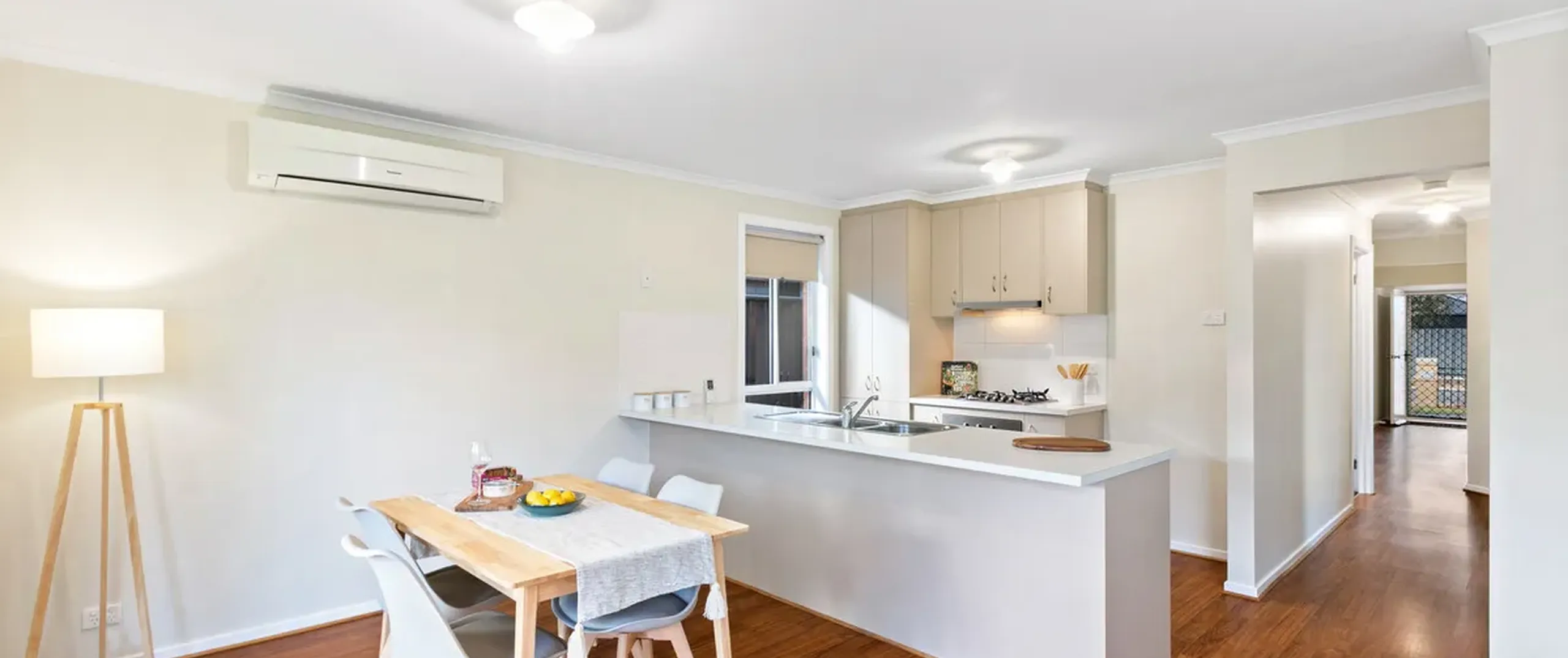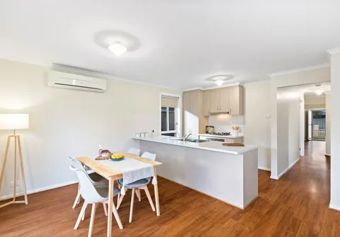 - Light-filled, open plan dining and living area with reverse cycle split system air-conditioner