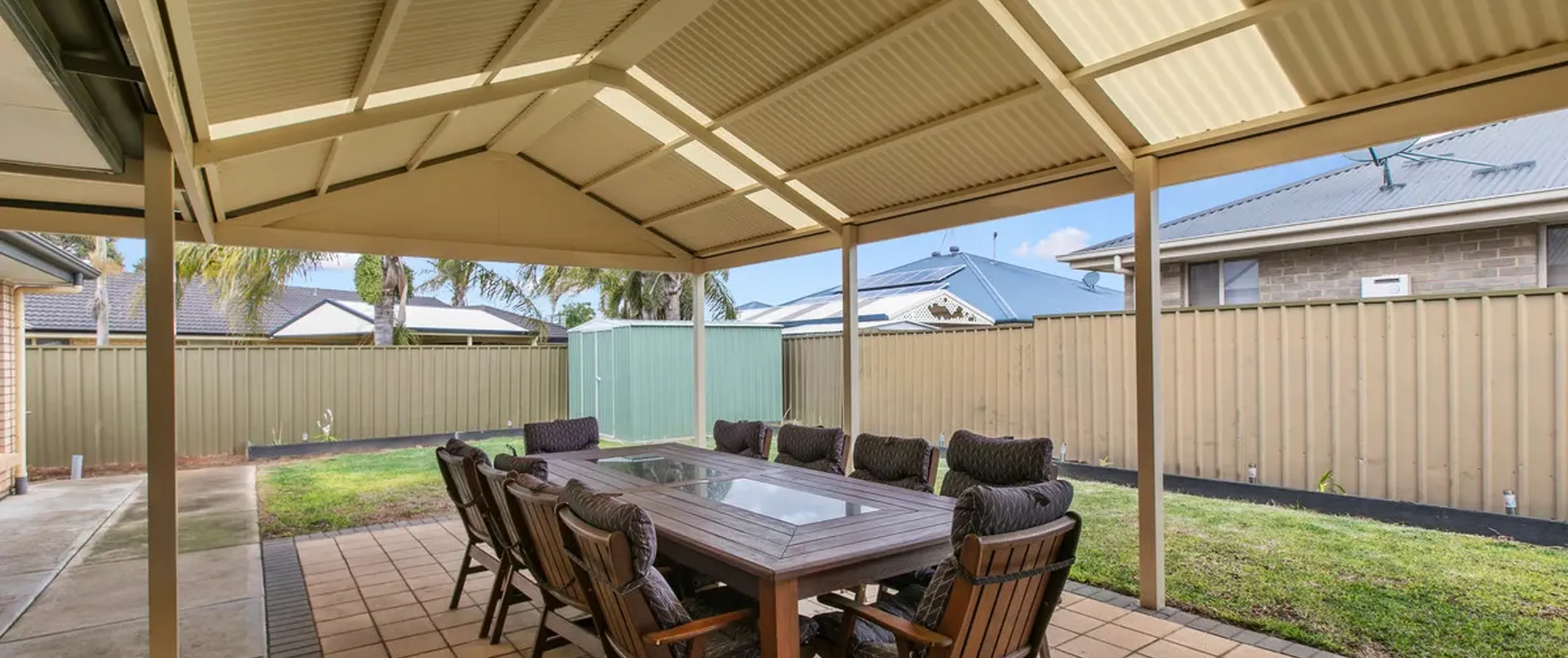 - Pitched roof pergola perfect for entertaining guests, while kids and pets enjoy the spacious backyard