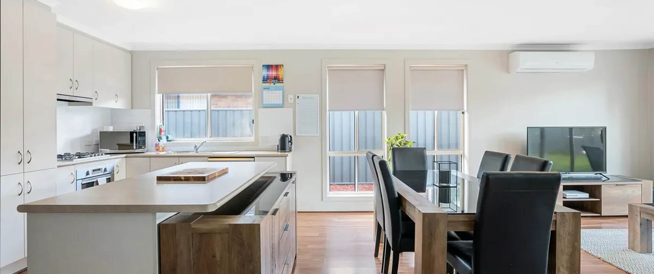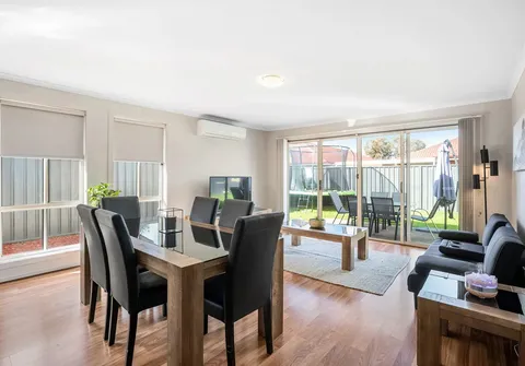 - Large open plan living/meals with split-system reverse cycle air conditioner and double glass doors flowing seamlessly to the rear yard