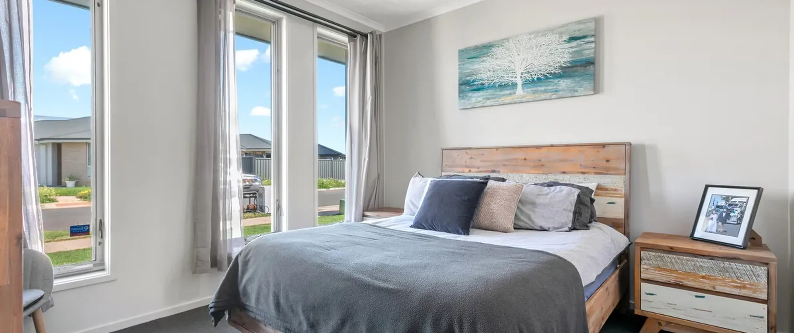 - Master bedroom to the front of the home with walk-in robe and ensuite