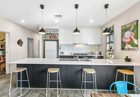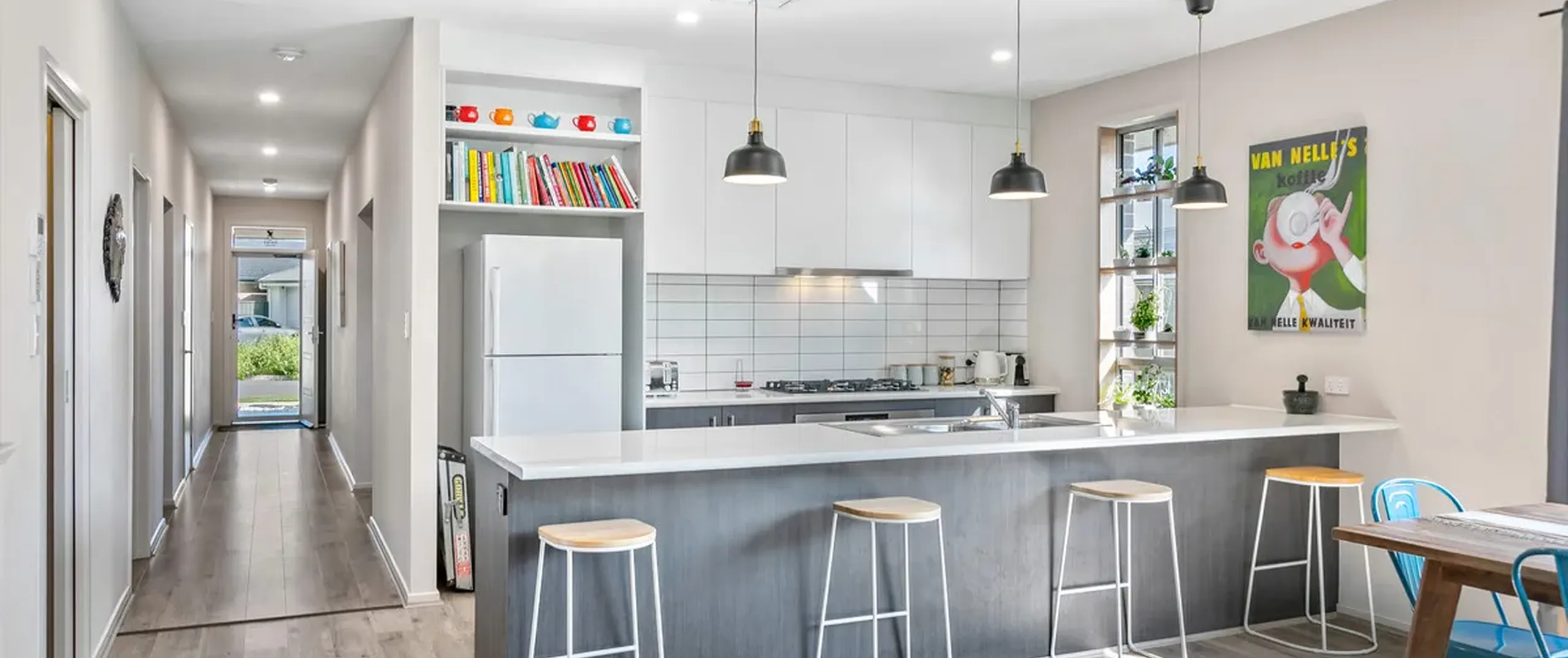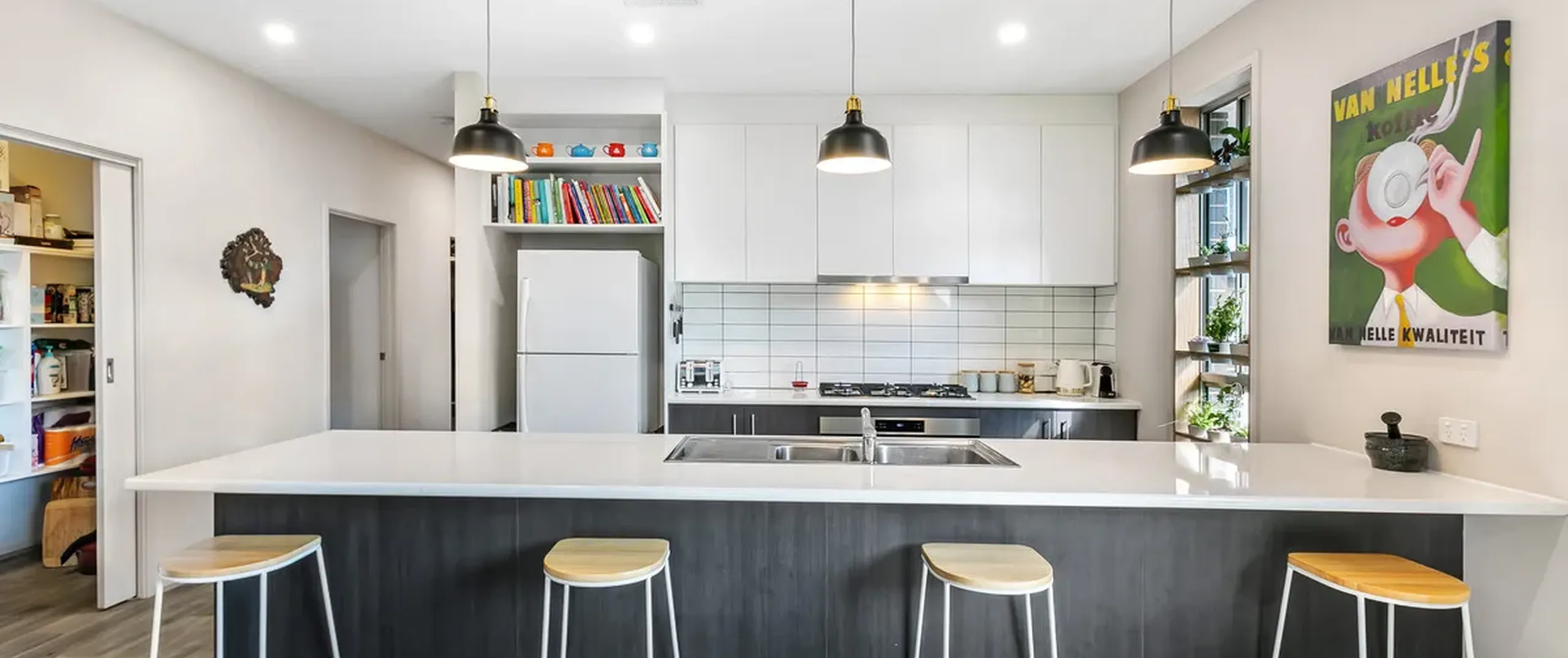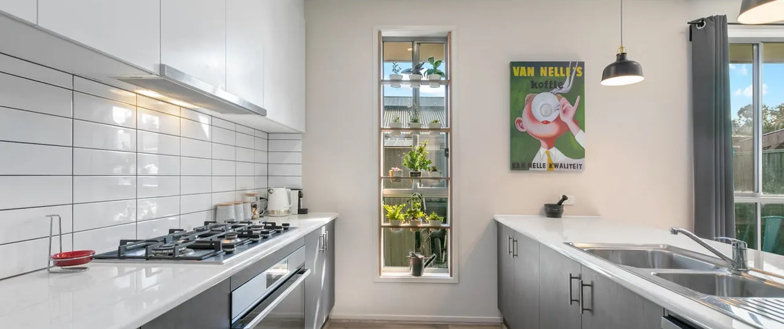 - Stunning gallery style kitchen with subway tile splash back, dishwasher, oven and 6-burner gas cooktop, generous sized pantry, ample cupboard space and breakfast bar completed by feature light pendants