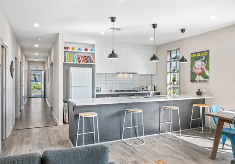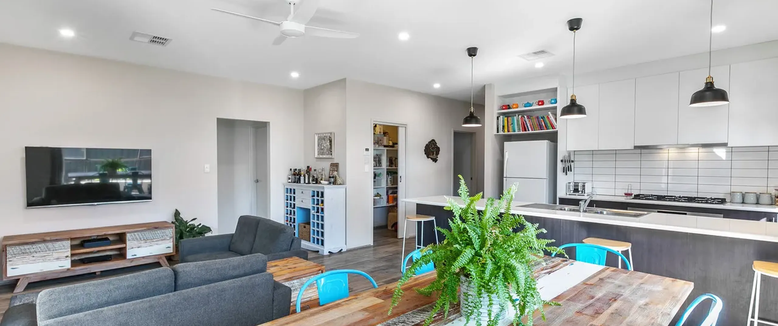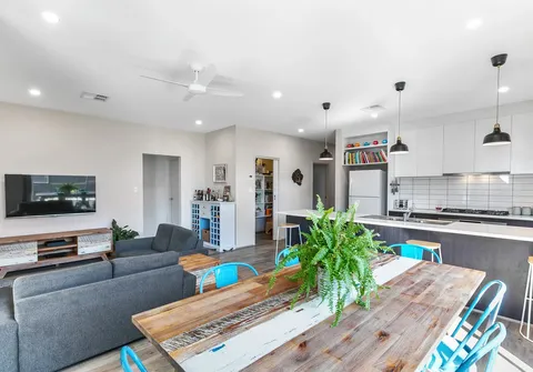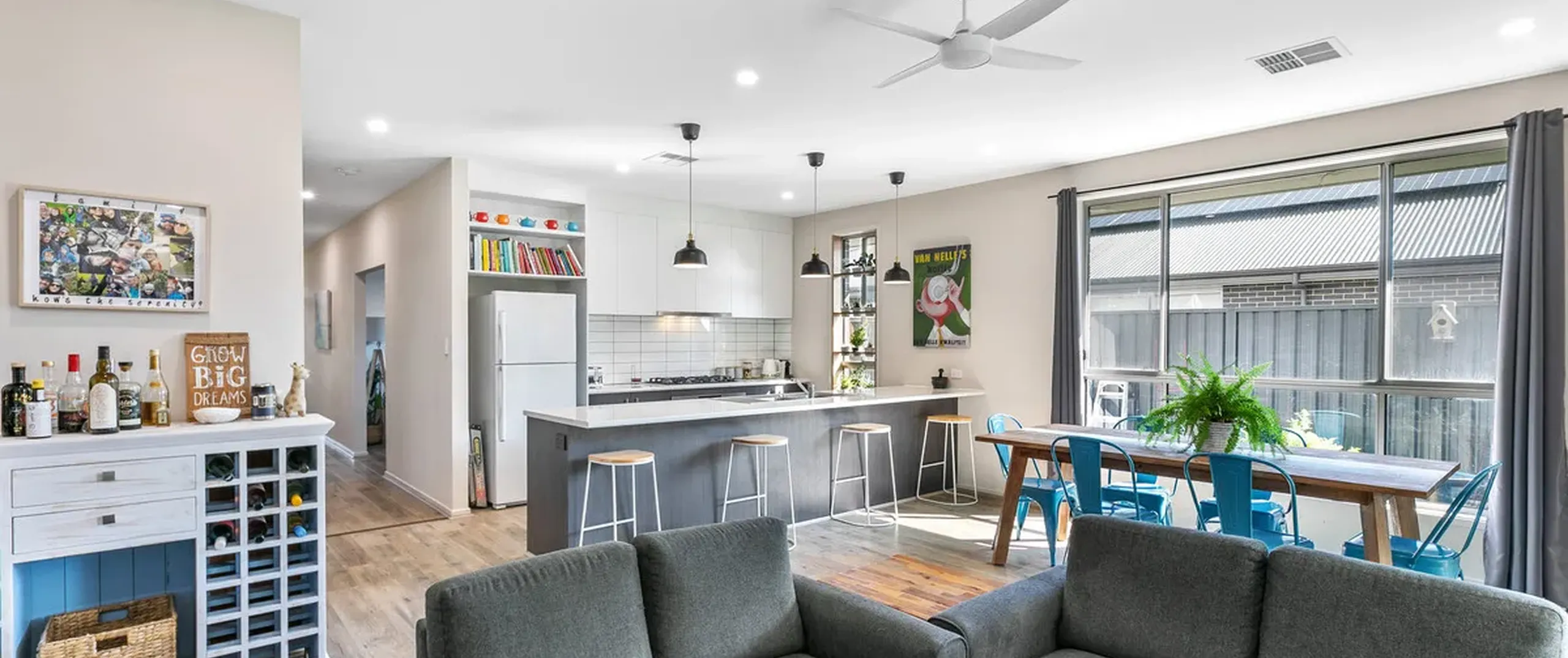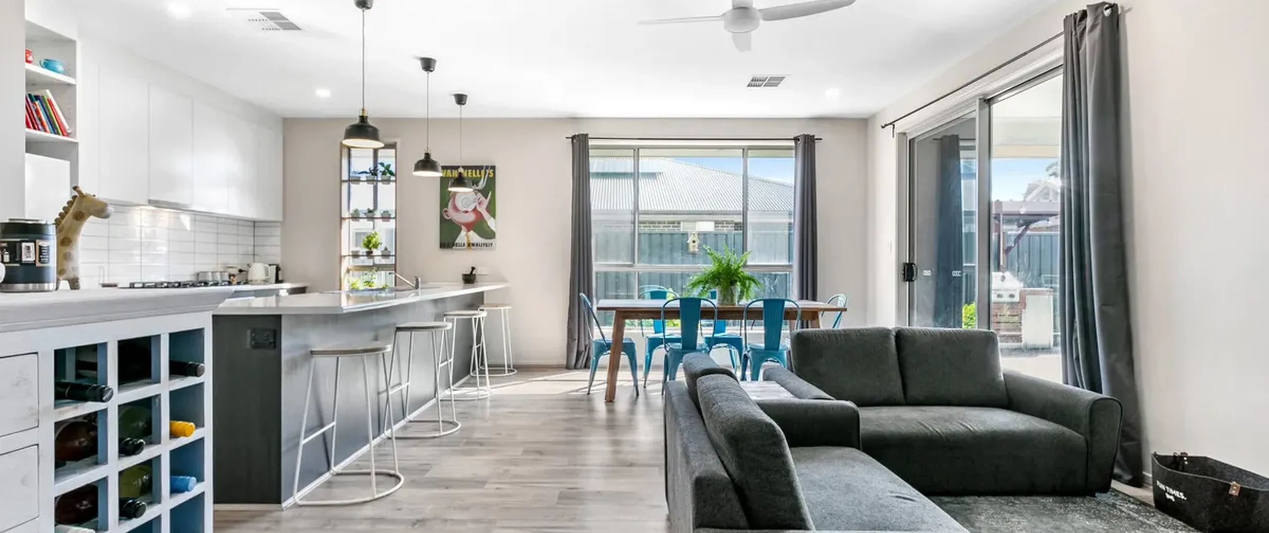 - Light filled open plan kitchen, dining and living area with downlights throughout, ceiling fan and glass sliding doors opening to the alfresco