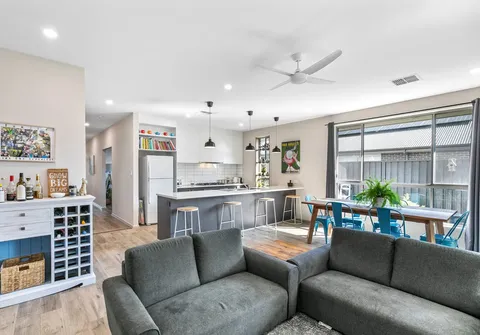 Rarely do opportunities like this present themselves to the market! Boffo Real Estate are proud to present this immaculate 2021 built Hickinbotham family home, ready for you to simply move in and enjoy the finer things in life. Nestled on a one of a kind 570sqm (approximate) allotment, this five-bedroom, two-bathroom floorplan is practical and has been complemented with 2.7m high ceilings and a host of unique and stylish touches throughout.