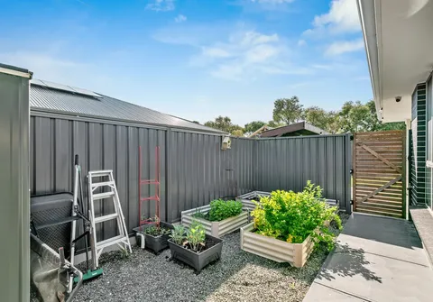 - Valuable separate, gated side yard with raised veggie gardens, tool shed and frontal accessed parking space for the trailer/camper