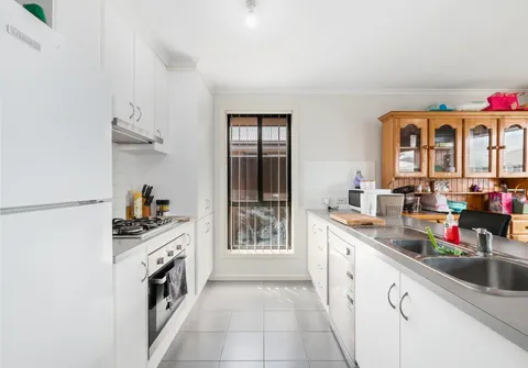 The layout features three bedrooms, two with built-in robes and the main bedroom with a walk-in robe and ensuite. Ample living space allows you to relax in the separate lounge room, gather with friends in the open-plan kitchen, dining and living space or step out to the rear yard. The kitchen is set in the heart of the layout and features a gas cooktop, a tiled splashback and plenty of bench space for the avid foodie.