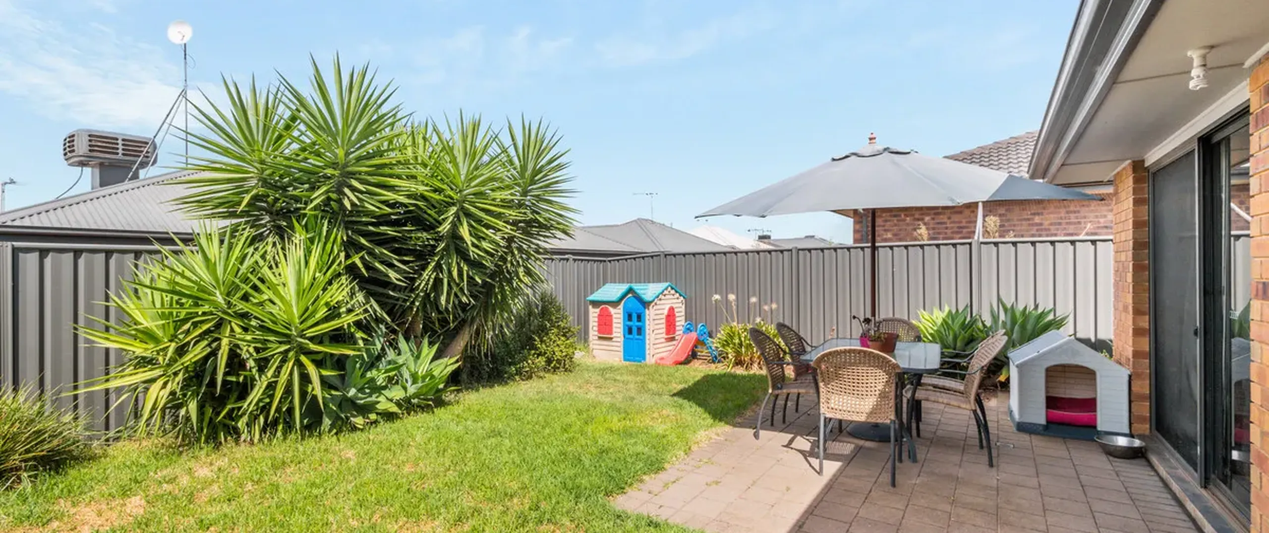 - Low-maintenance backyard with grassed area for kids and pets to run free