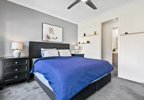 - Light-filled master bedroom with ceiling fan, his and hers ensuite and walk-in robe
