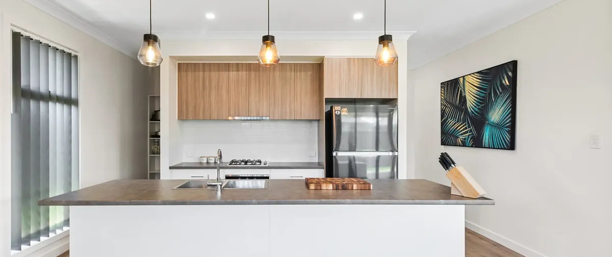 - Contemporary and stylish kitchen with a suite of stainless-steel appliances including a dishwasher, oven and gas cooktop, huge walk-in pantry, island bench with breakfast bar and stunning feature pendants