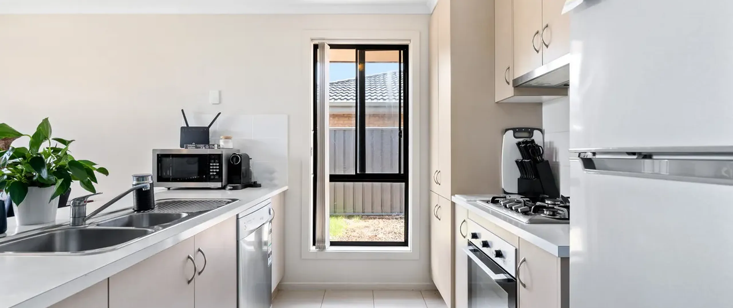 - Light filled open plan living, dining and kitchen area with sliding door opening to the backyard