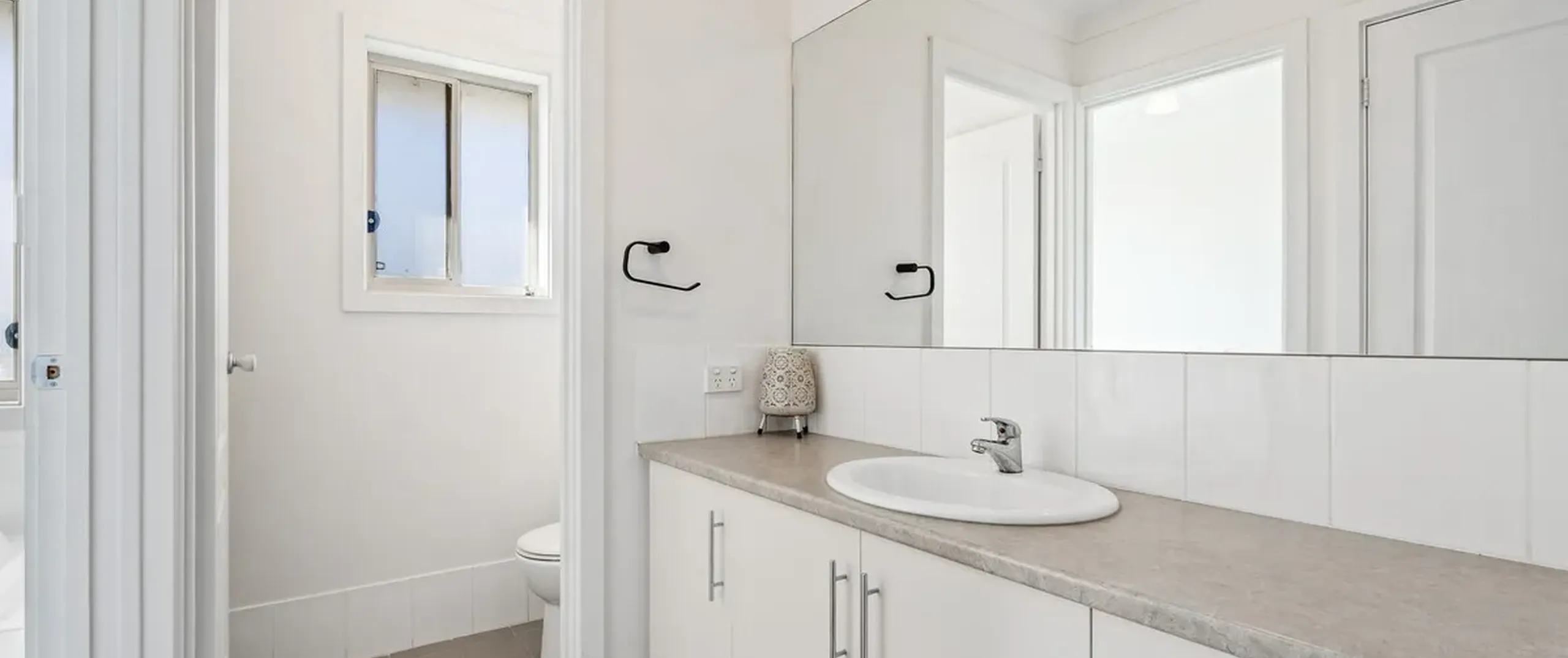 - Sleek three-way main bathroom with bath, shower, powder room and separate toilet