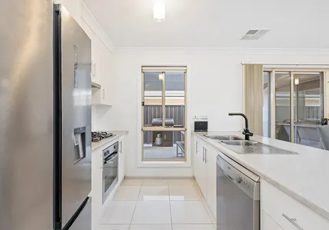The layout features four bedrooms, three with built-in robes and the master bedroom with a walk-in robe and ensuite. Daily life will be a joy in the light-filled open-plan living space with neutral flooring and ducted reverse cycle air-conditioning, plus a sliding door that opens out to the outdoor entertaining area. A timeless kitchen awaits the budding chef with a gas cook top, dishwasher and ample storage and bench space.