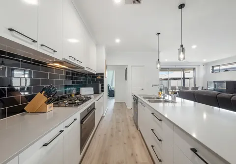 - Timeless kitchen featuring on-trend features including tiled splashback, pendant lights, a suite of stainless-steel appliances including 5 burner gas cooktop, oven, and dishwasher complete with walk-in pantry and ample cupboard and separate extra bench space