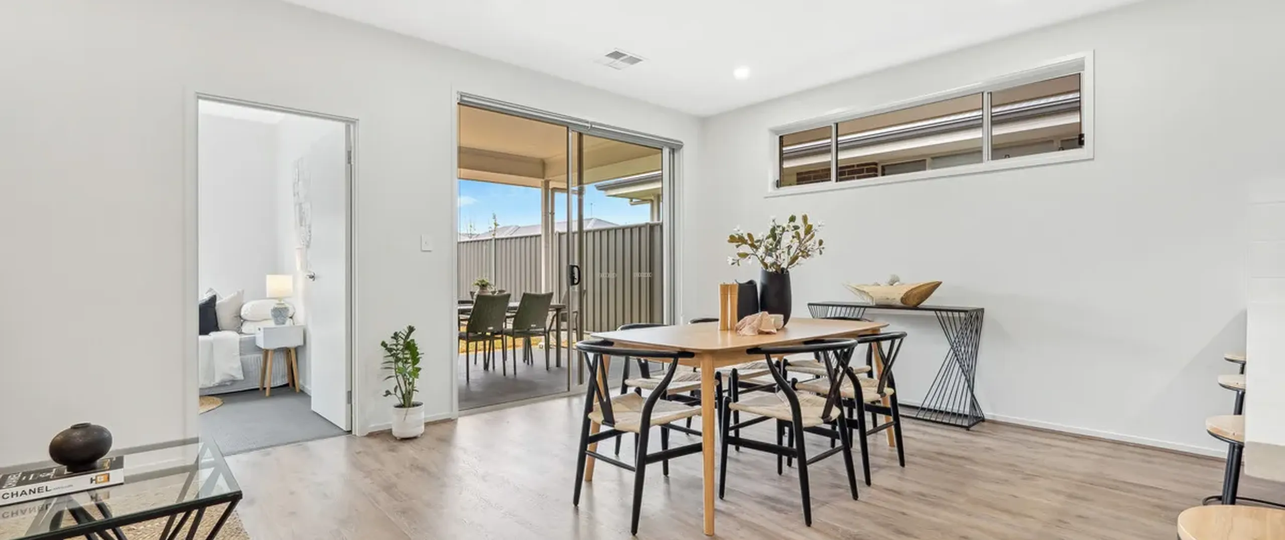 - Light filled open plan kitchen, dining and living area with glass sliding door leading to alfresco area