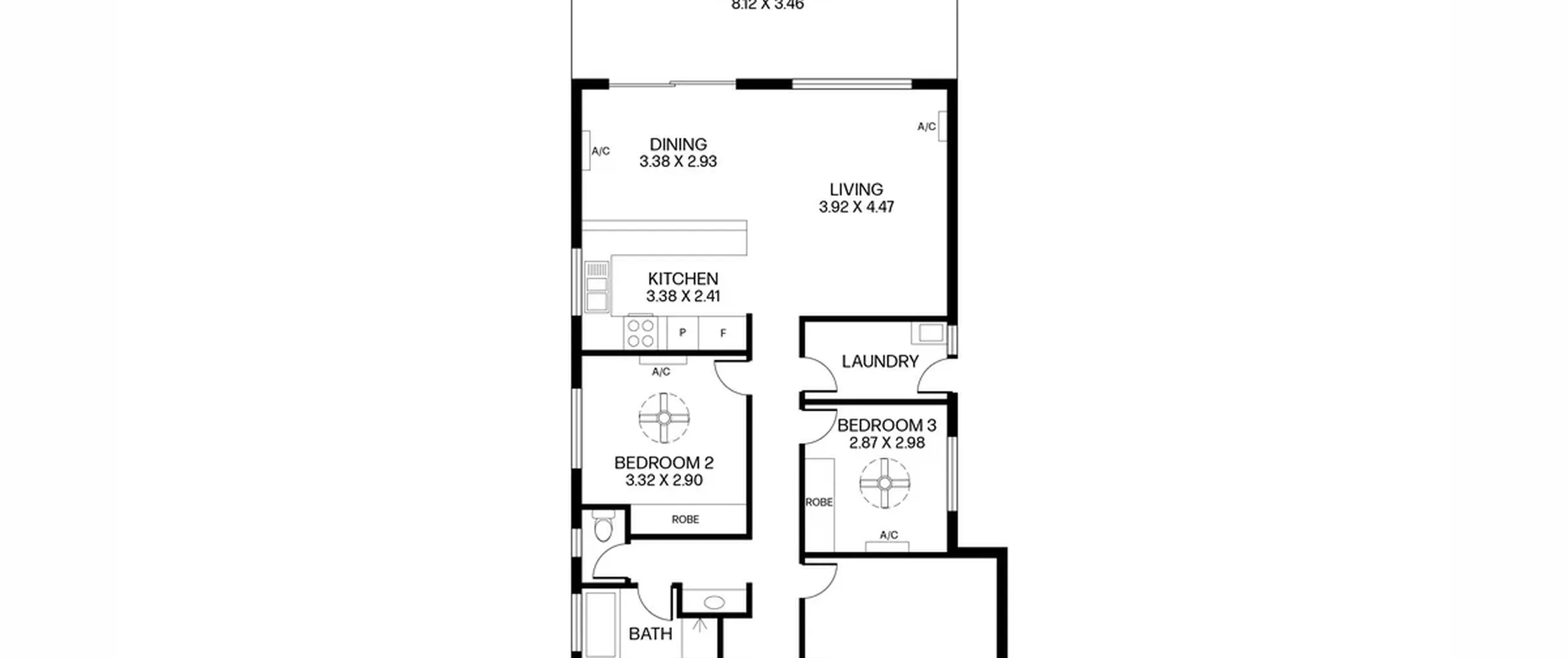 - All three bedrooms with built-in robes, split system air conditioners and ceiling fans