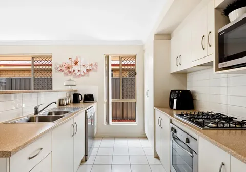 Step inside to discover a beautifully maintained single-level layout featuring a formal lounge and a light-filled, open-plan kitchen and living area. Glass sliding doors lead out to a picturesque alfresco and a meticulously landscaped rear yard with lush, manicured lawns—perfect for outdoor relaxation or entertaining.