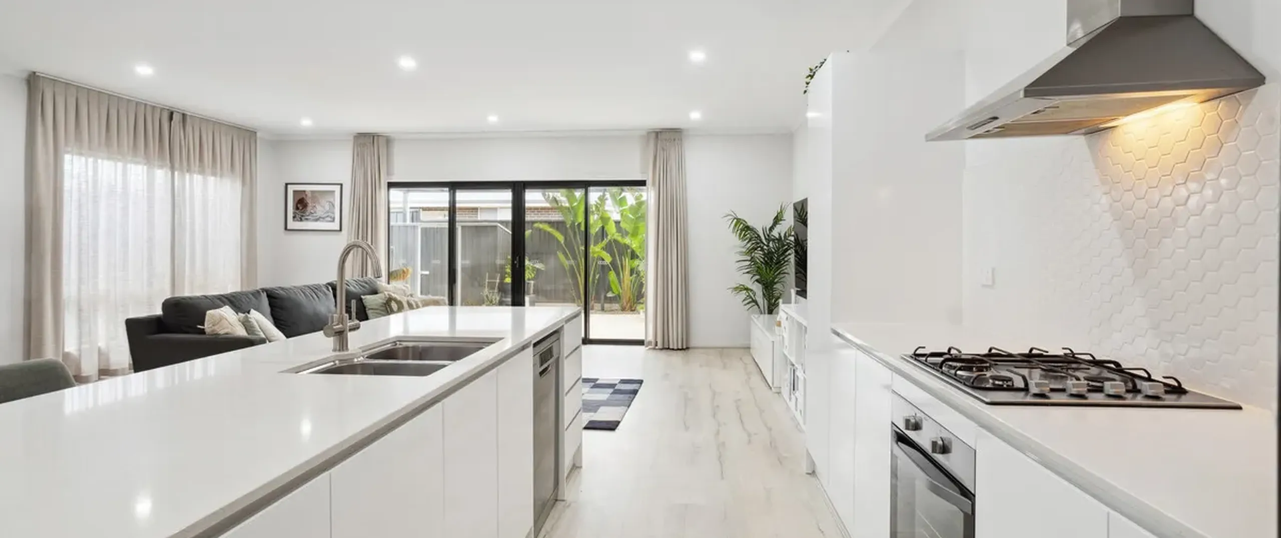 - Expansive open plan kitchen, meals and living area with large glass sliding doors flowing seamlessly to the backyard