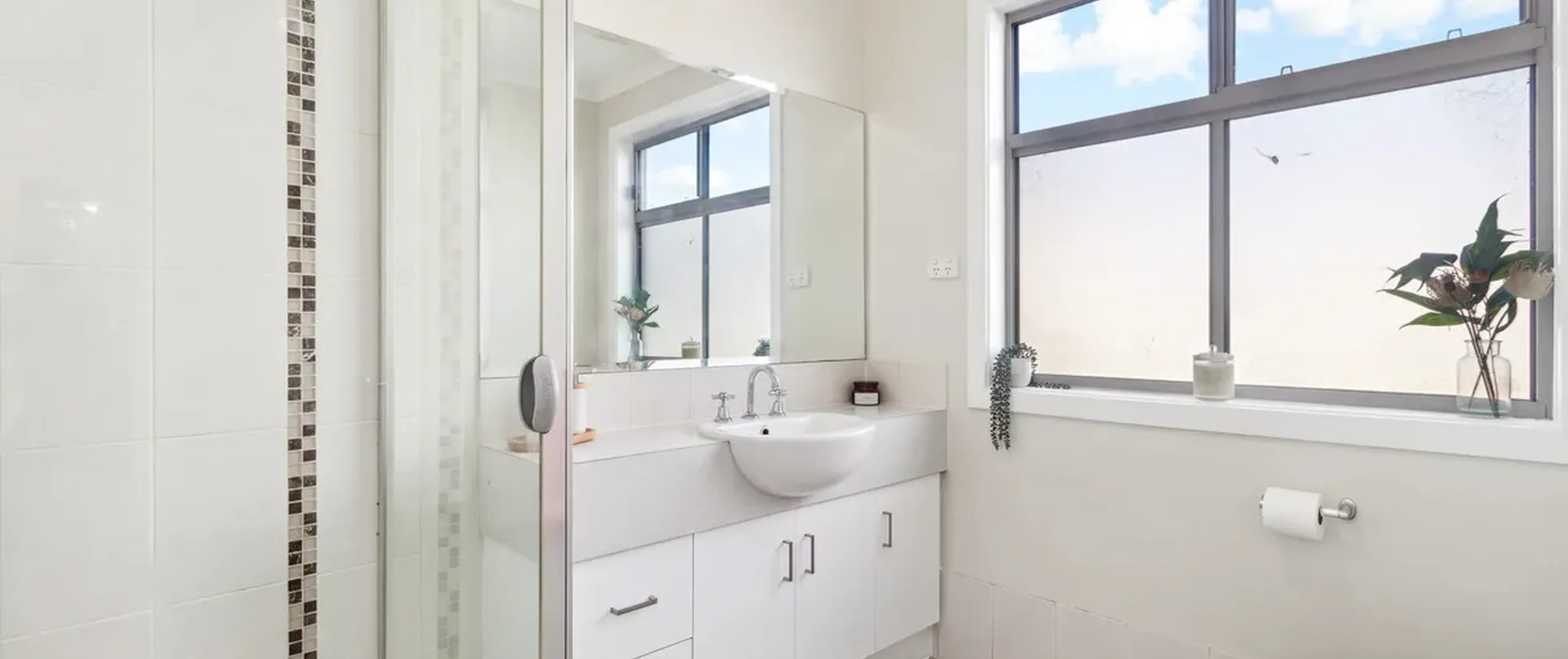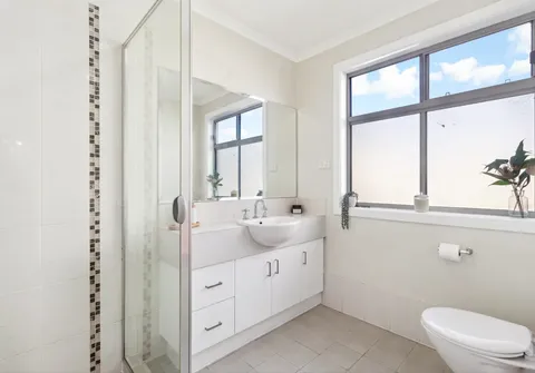 - Main bathroom centrally located, featuring shower and toilet