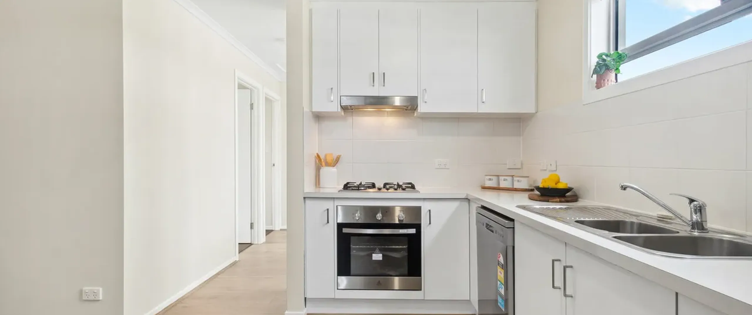 - Timeless kitchen with gas cooktop as well as brand-new stainless-steel appliances (including oven, dishwasher and fridge) and walk-in pantry