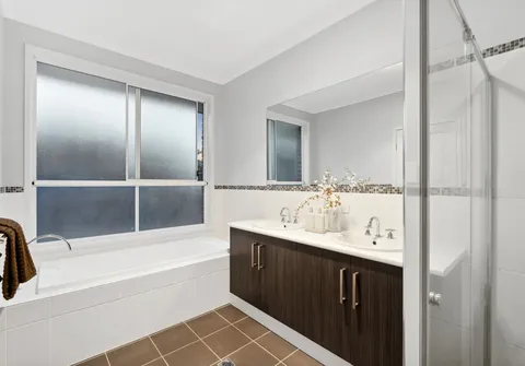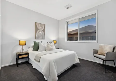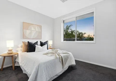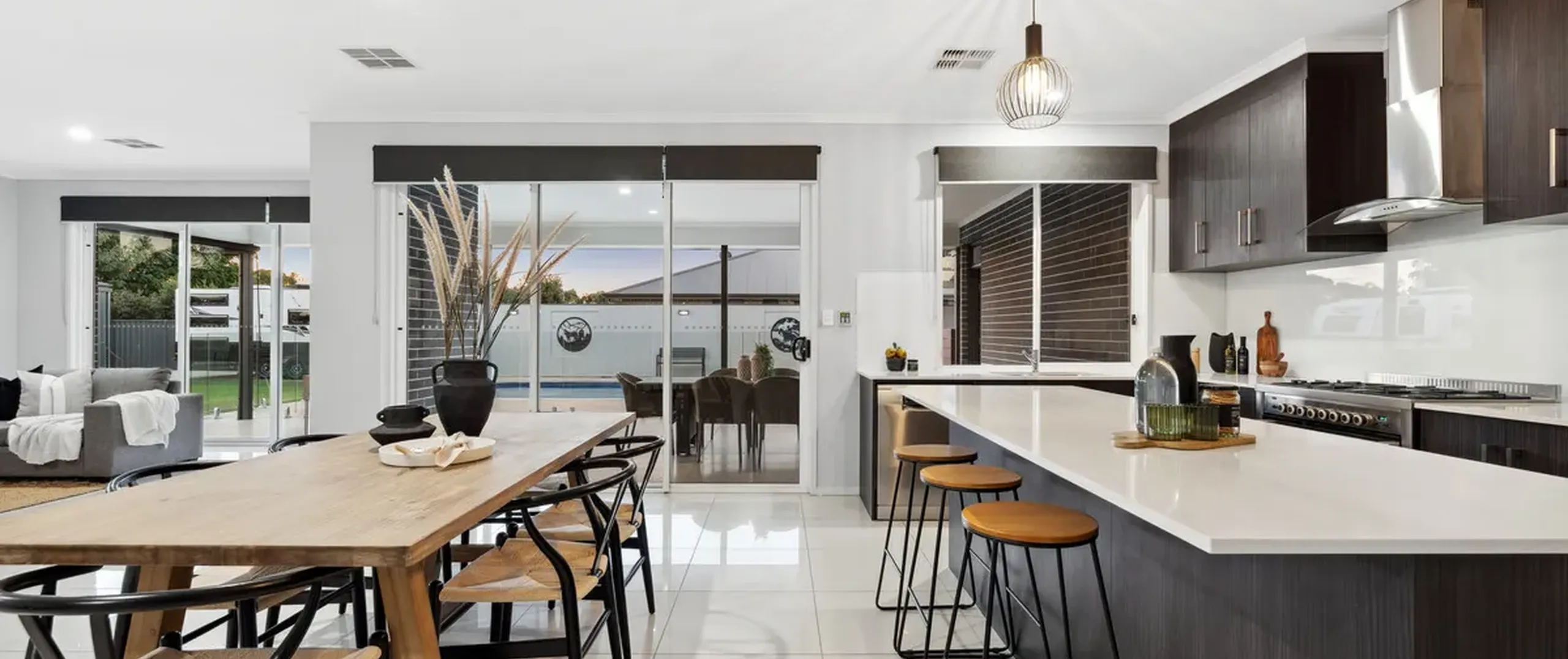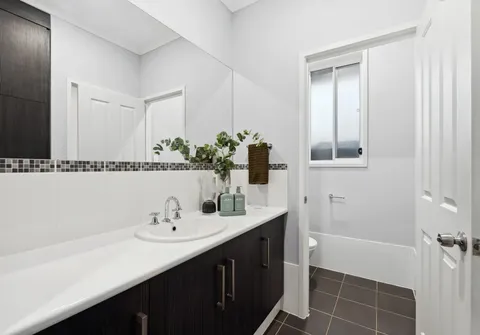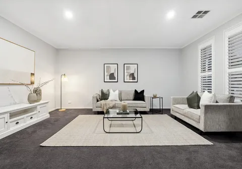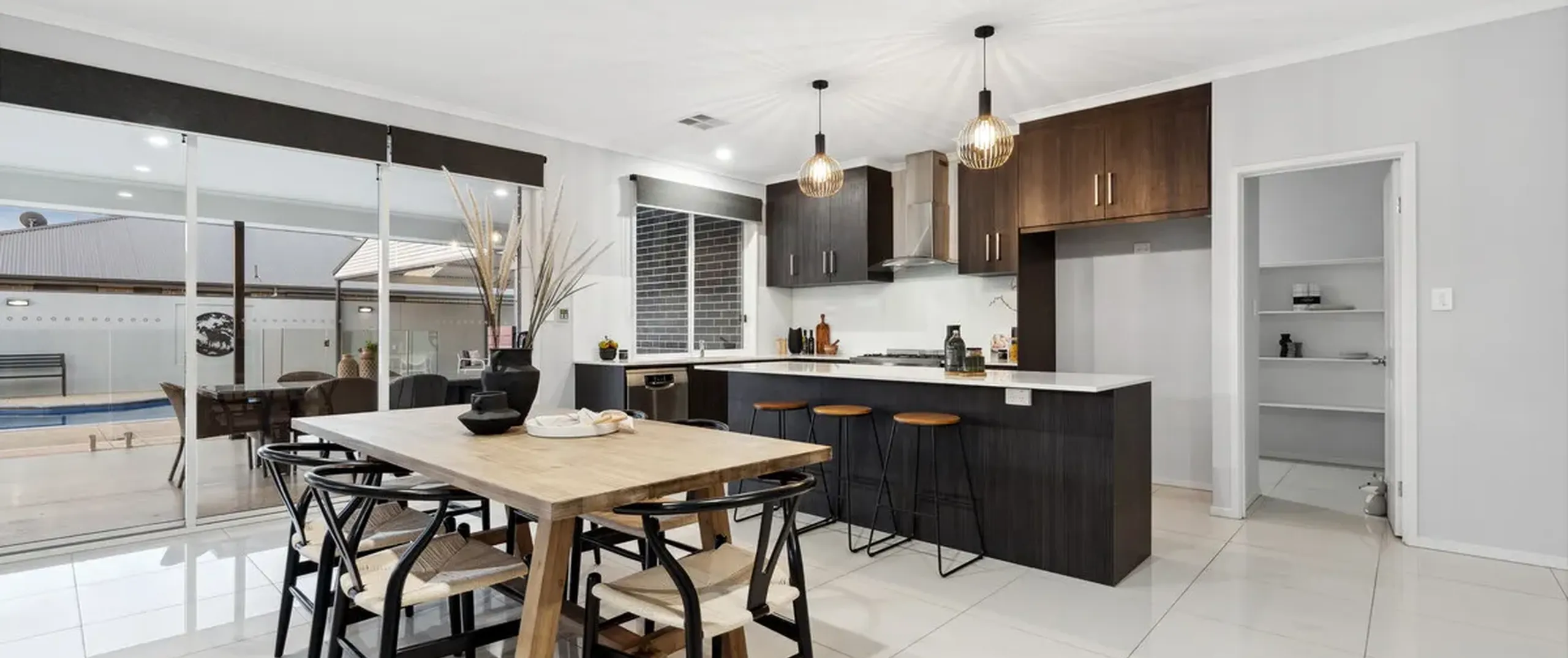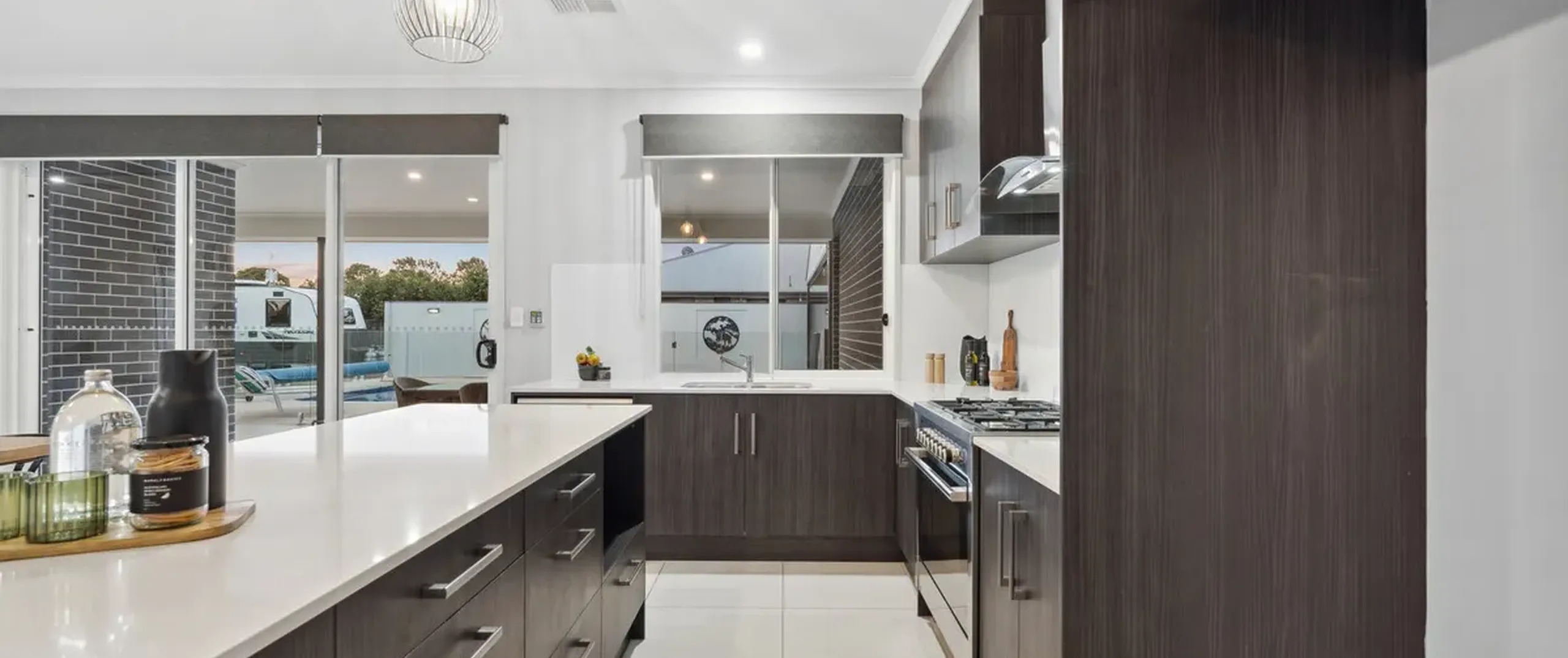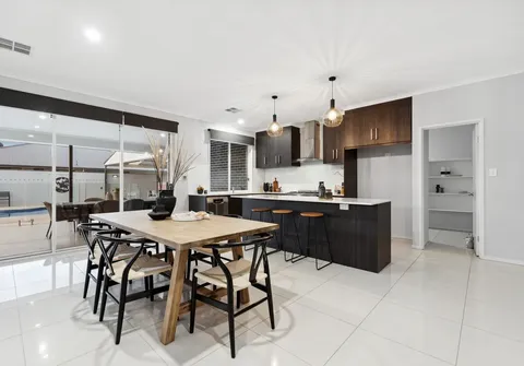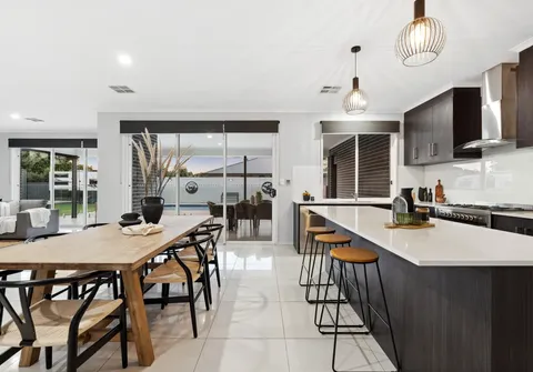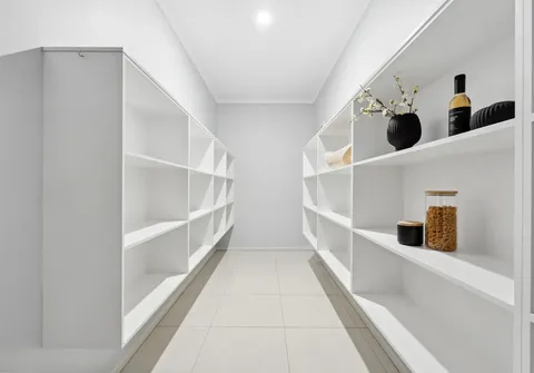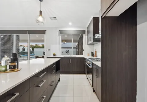 Inside, multiple spacious living spaces await, complemented by neutral colourways and on-trend fixtures and fittings. An open plan kitchen, dining, and living room serves as the hub of daily life, while a separate lounge room offers a quiet escape, perfect for losing oneself in a book. The stylish kitchen features an island bench, dreamy walk-in pantry, dishwasher, and gas stove top, catering to eager cooks and providing the ideal spot for entertaining with seamless flow between indoor and outdoor dining areas.
