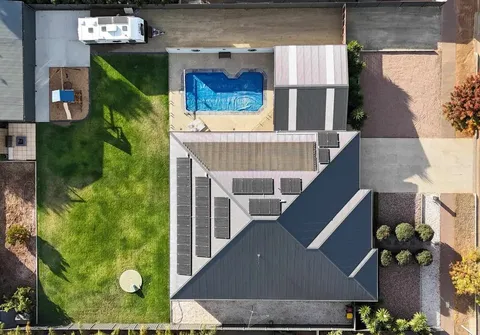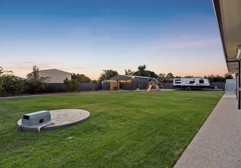 Located on a prime allotment in a dress circle location within Angle Vale, this meticulously maintained four-bedroom family home sits on a substantial lot size of 1800sqm (approximate) boasting an extraordinary wide frontage. With a blend of spacious interiors and captivating outdoor spaces, it offers an ideal setting for creating cherished memories.