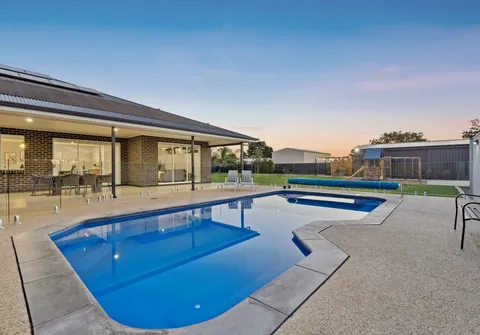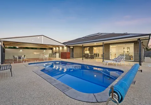 Outside, is truly jaw-dropping with so much on offer. A large manicured grassed area, a spectacular in-ground swimming pool with a glass pool fence, and a spacious, decked undercover outdoor entertaining area with an outdoor kitchen provide ample space for gatherings and memory-making. An additional alfresco area under the main roof extends the outdoor dining options. Completing this outdoor masterpiece is a large shed situated at the rear of the home, conveniently accessible via a side gate from the driveway, perfect for use as a workshop or additional storage.