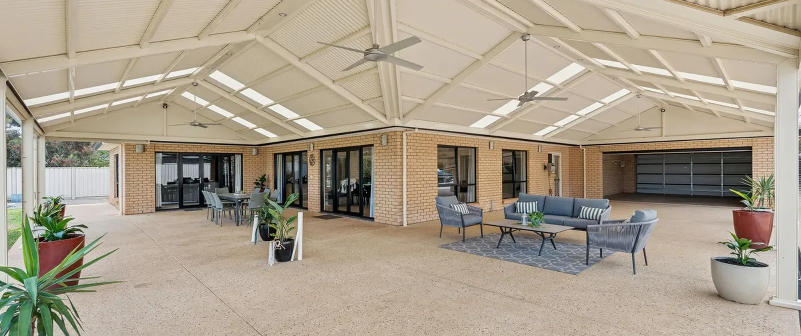 - Expansive undercover entertaining area with ceiling fans