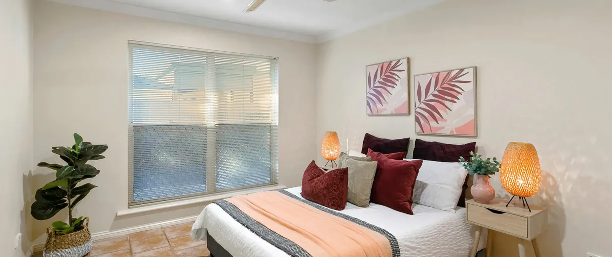 - 2 bedrooms both with ceiling fans, master with built in robes