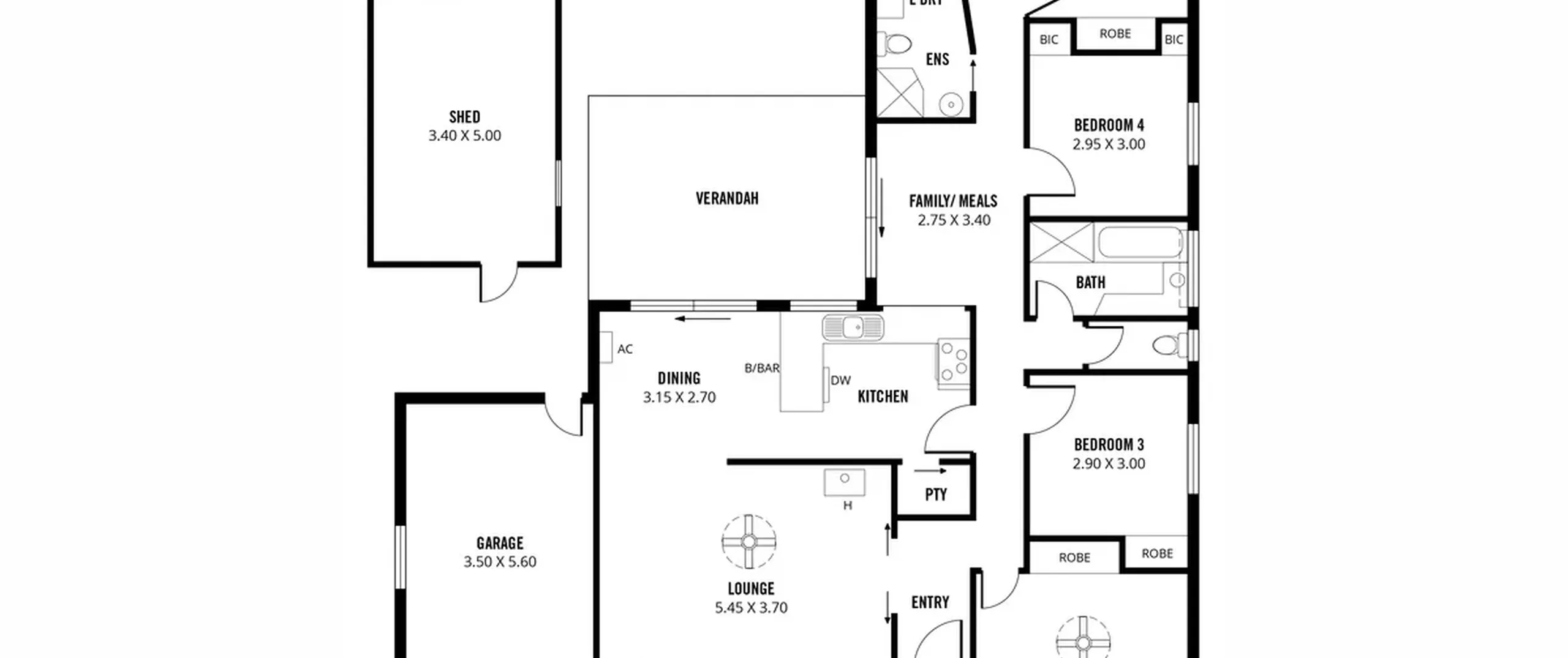 - Good sized bedrooms 3 and 4 both with built-in robes; bedroom 4 also with built in bookcase shelving