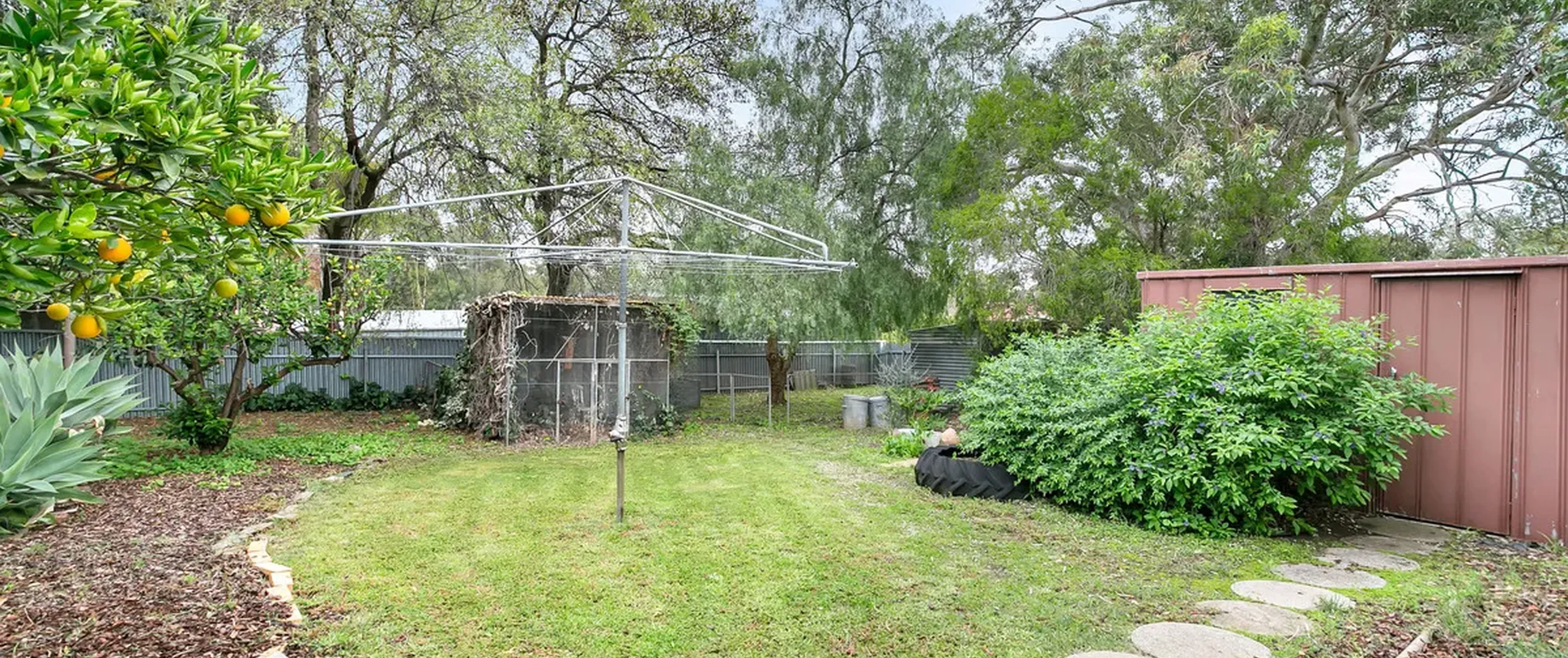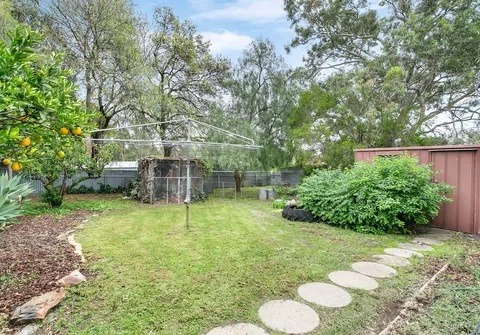 - Fully fenced yard with garden shed, pop up sprinklers to lawn, mature fruit trees, vegetable garden and chicken houses with free range enclosure