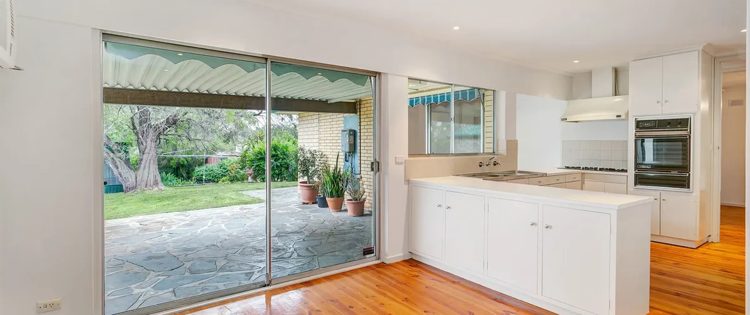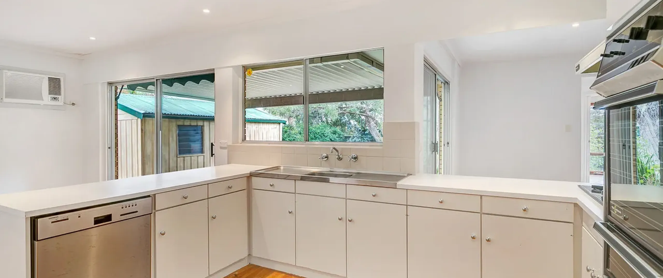 - Light filled dining space adjacent to kitchen with split system air conditioner