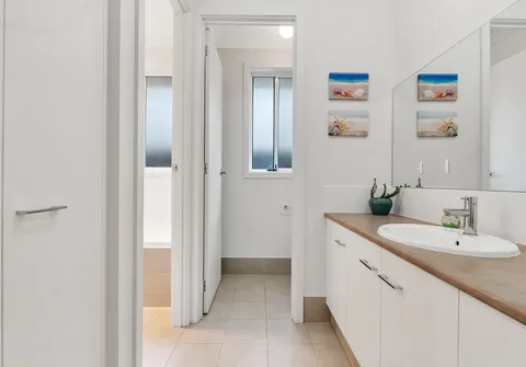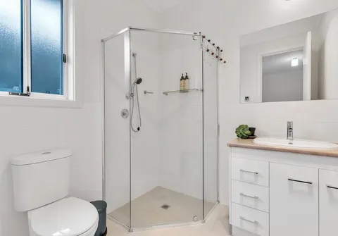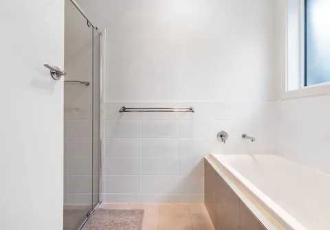 - 3 way main bathroom with built in linen, private toilet, separate bath & shower, mixer taps and semi-framed shower screen