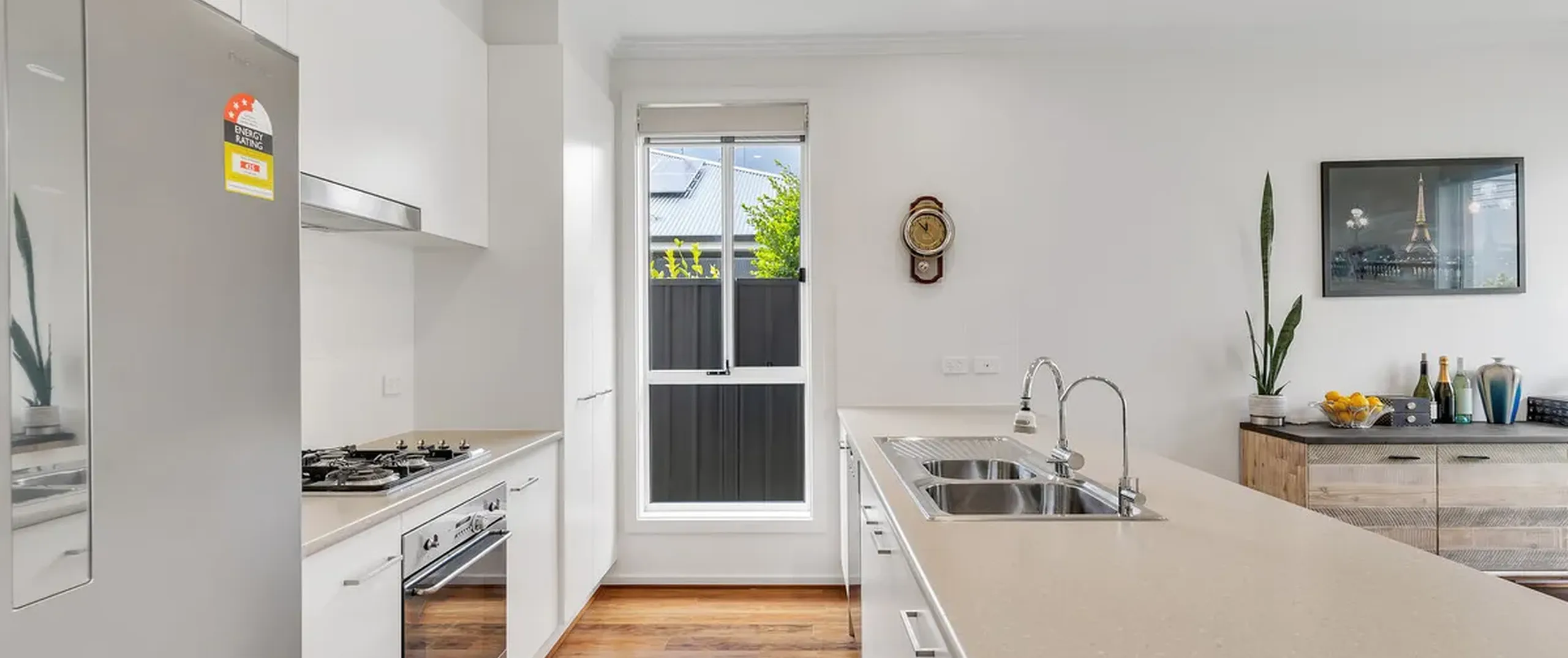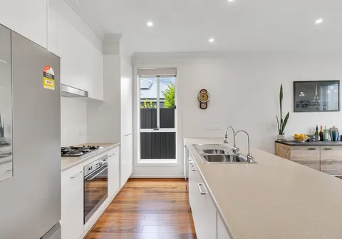 - Modern galley style kitchen, featuring; stainless steel appliances, gas cooktop, dishwasher, ample benchtop & cupboard space and breakfast bar