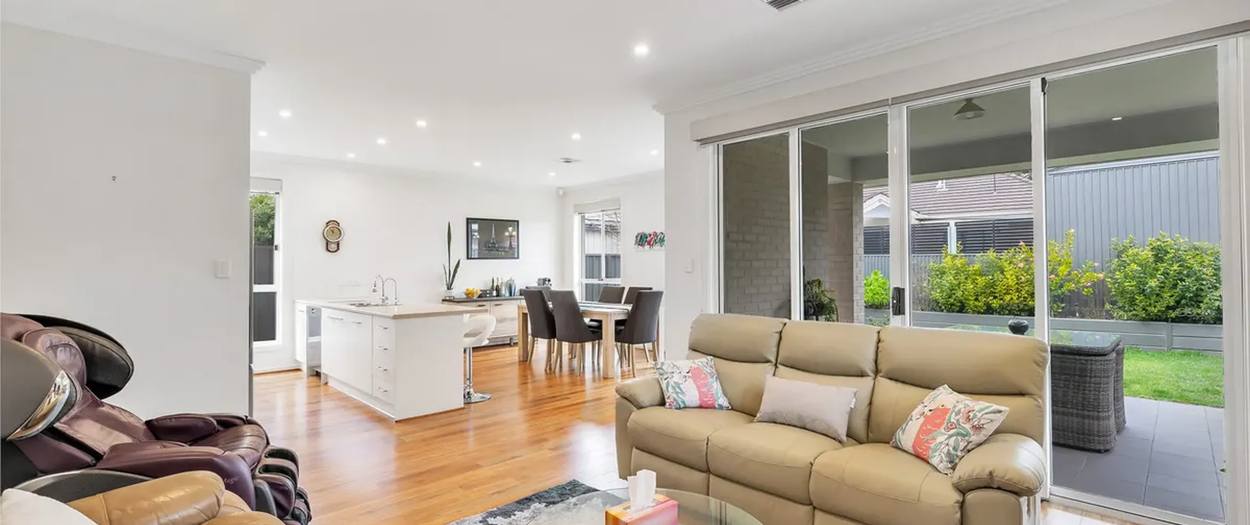 - Light filled open plan family/dining area with stack-back doors to Alfresco