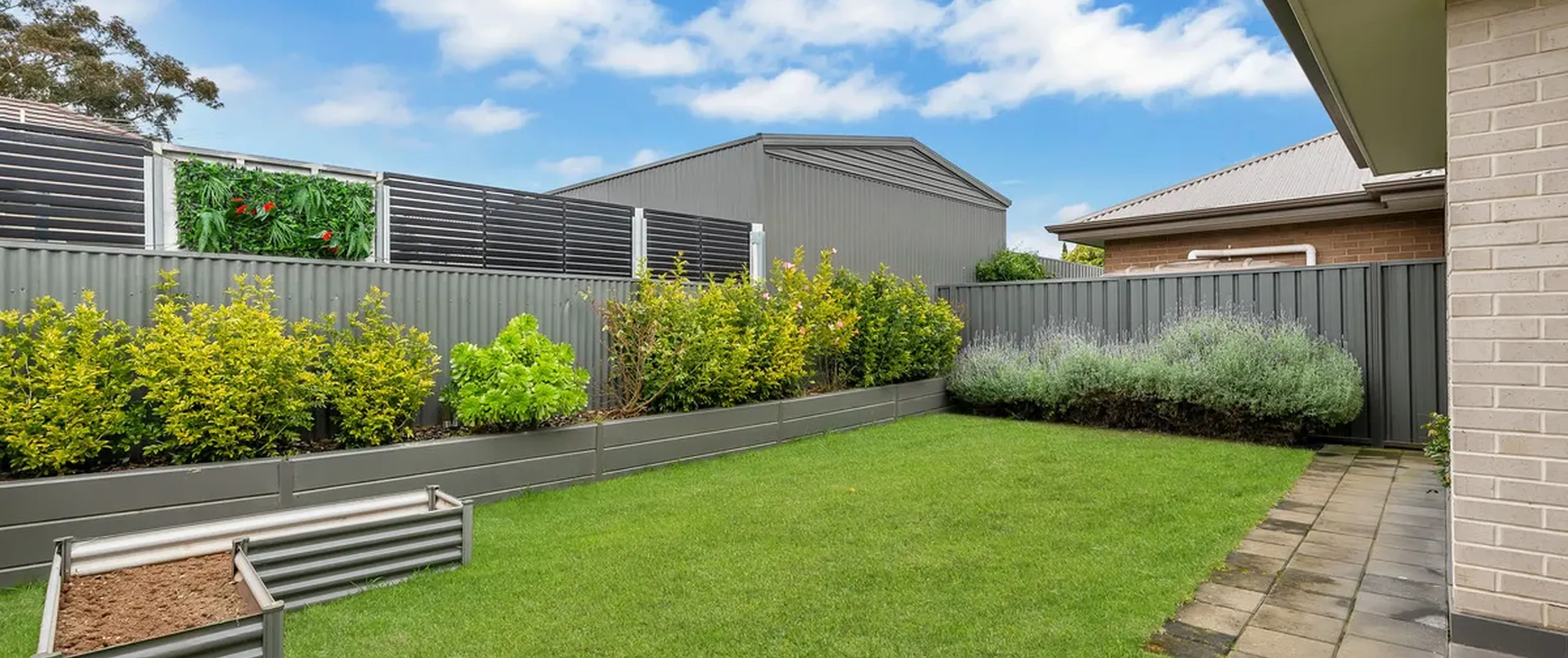 - Neat and tidy front and rear yard with raised garden beds and low maintenance plants
