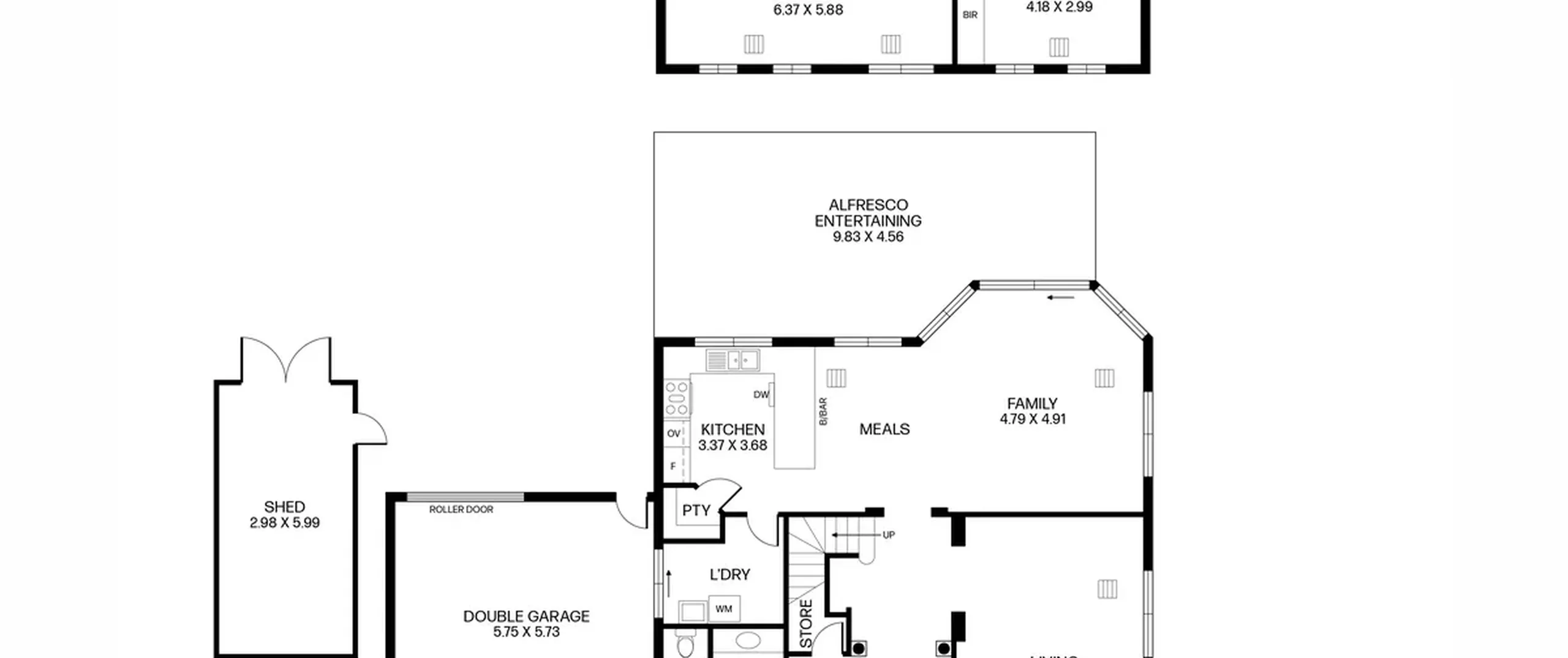 - Double garage with panel lift door, external and internal access and additional roller door for drive through access to backyard
