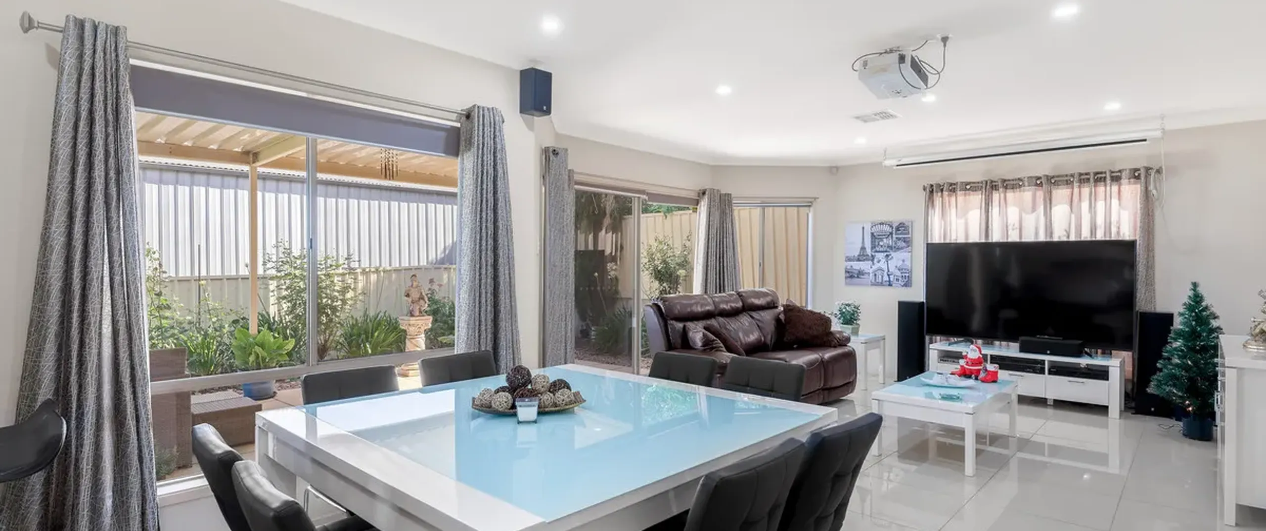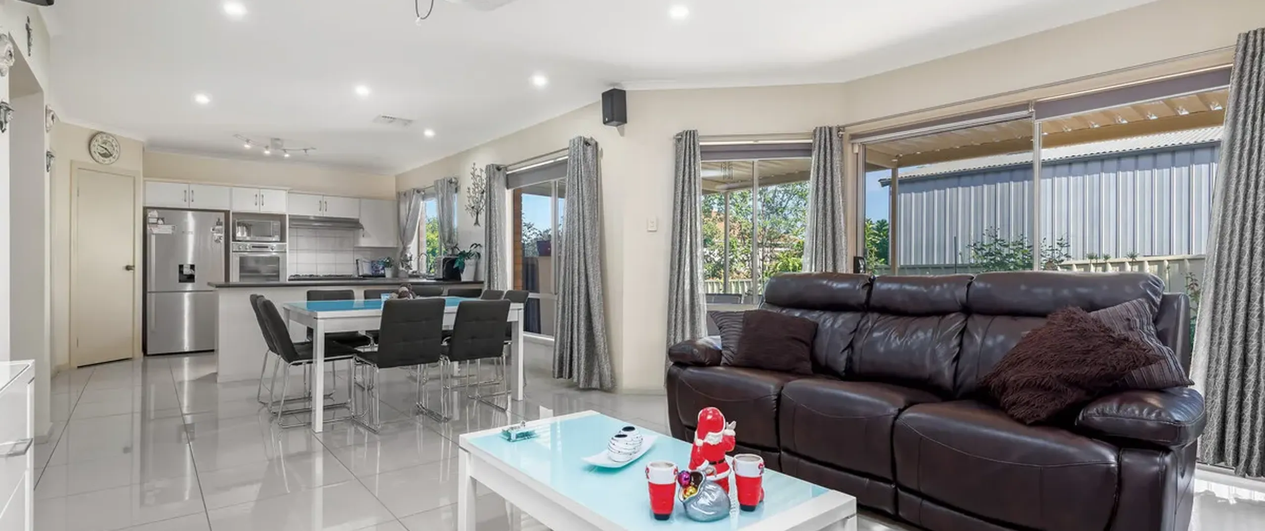 - Open plan family and meals area featuring downlights throughout and plenty of natural lighting