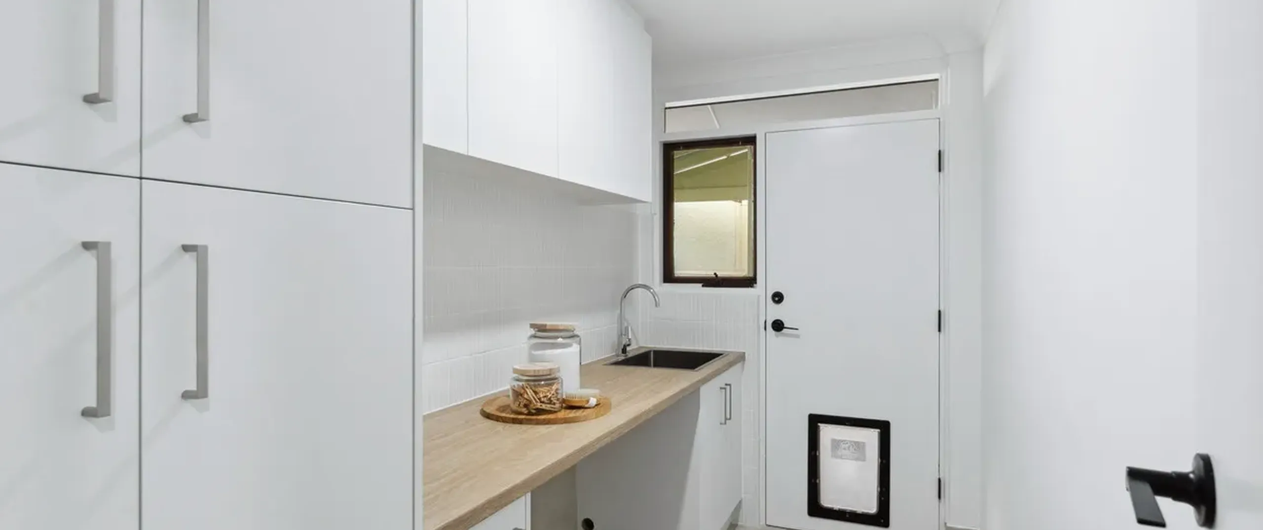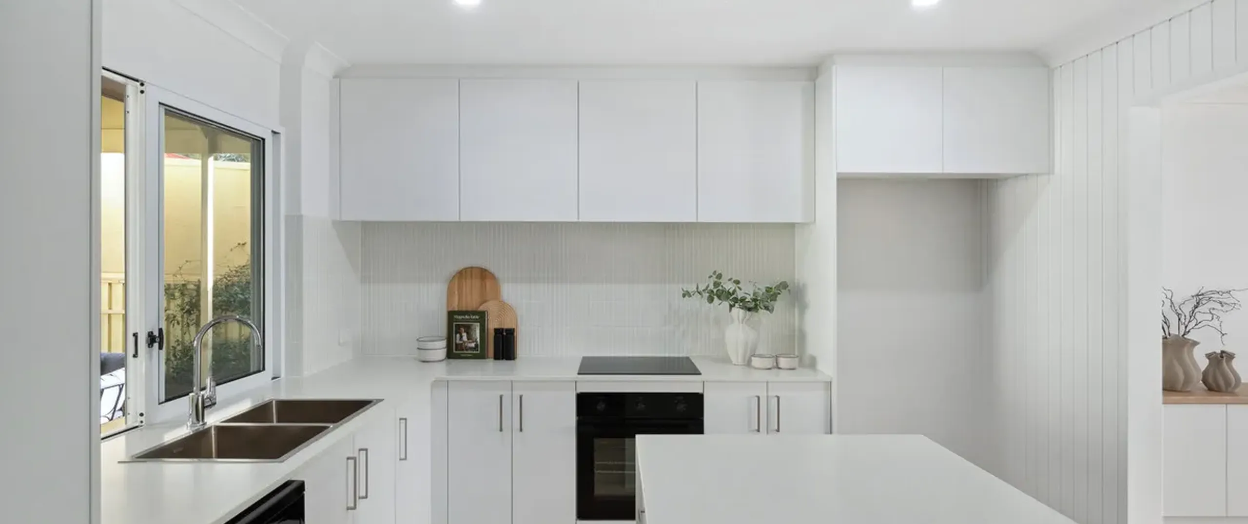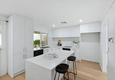 - Crisp white kitchen with soft close drawers, all new appliances including induction cooktop, oven, dishwasher, abundance of cupboard storage and sweeping stone benchtops with waterfall edges