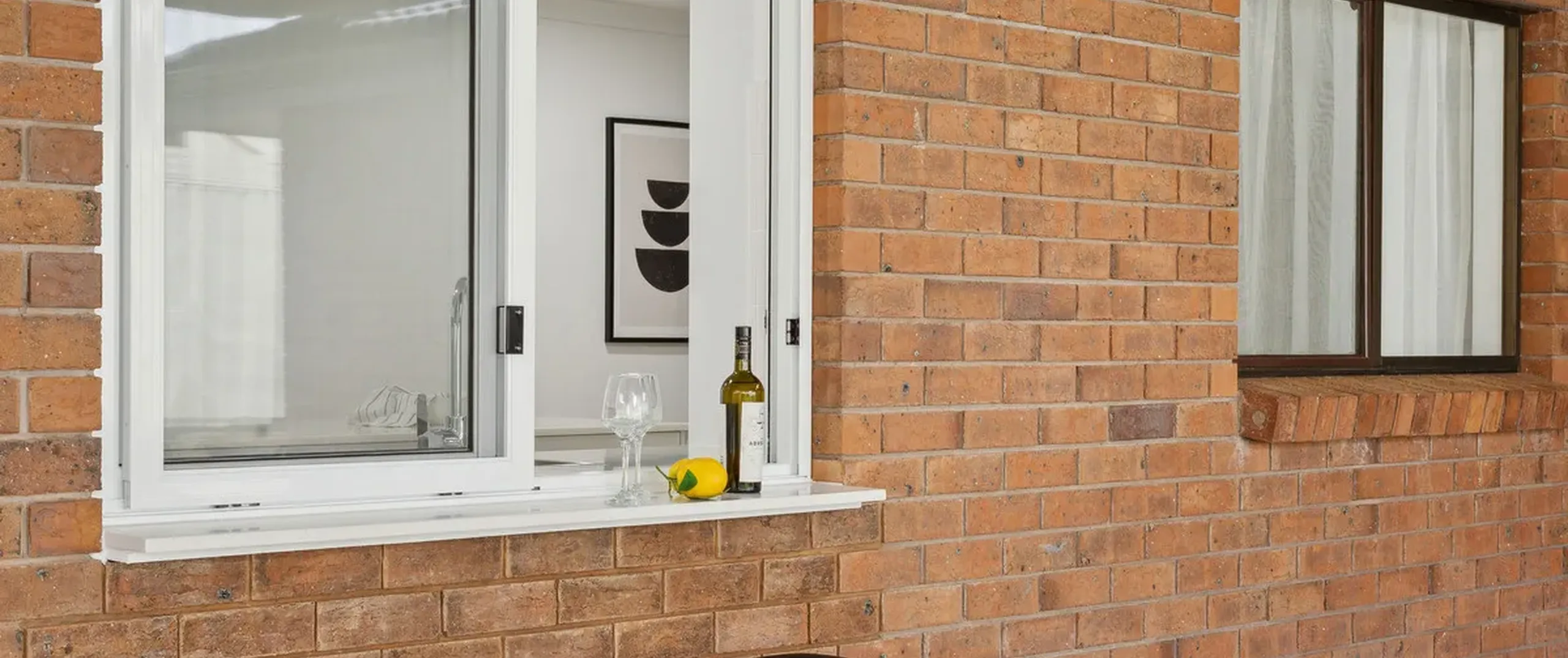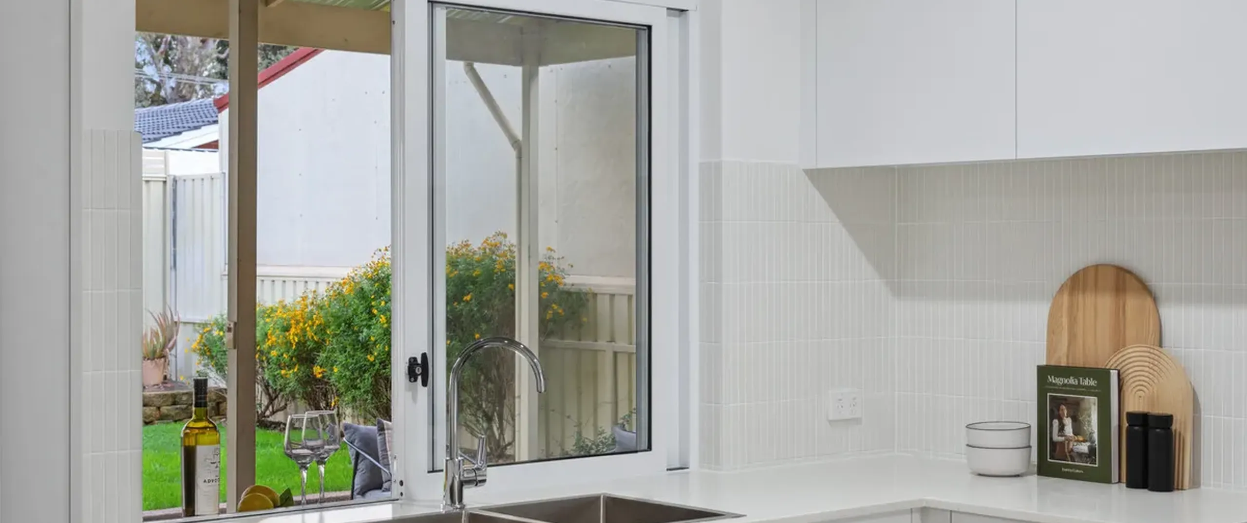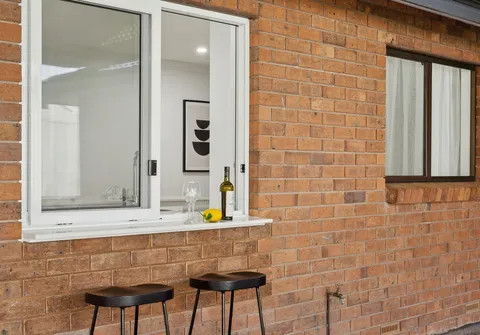 - Custom made servery window in the kitchen allows seamless access to the outdoors