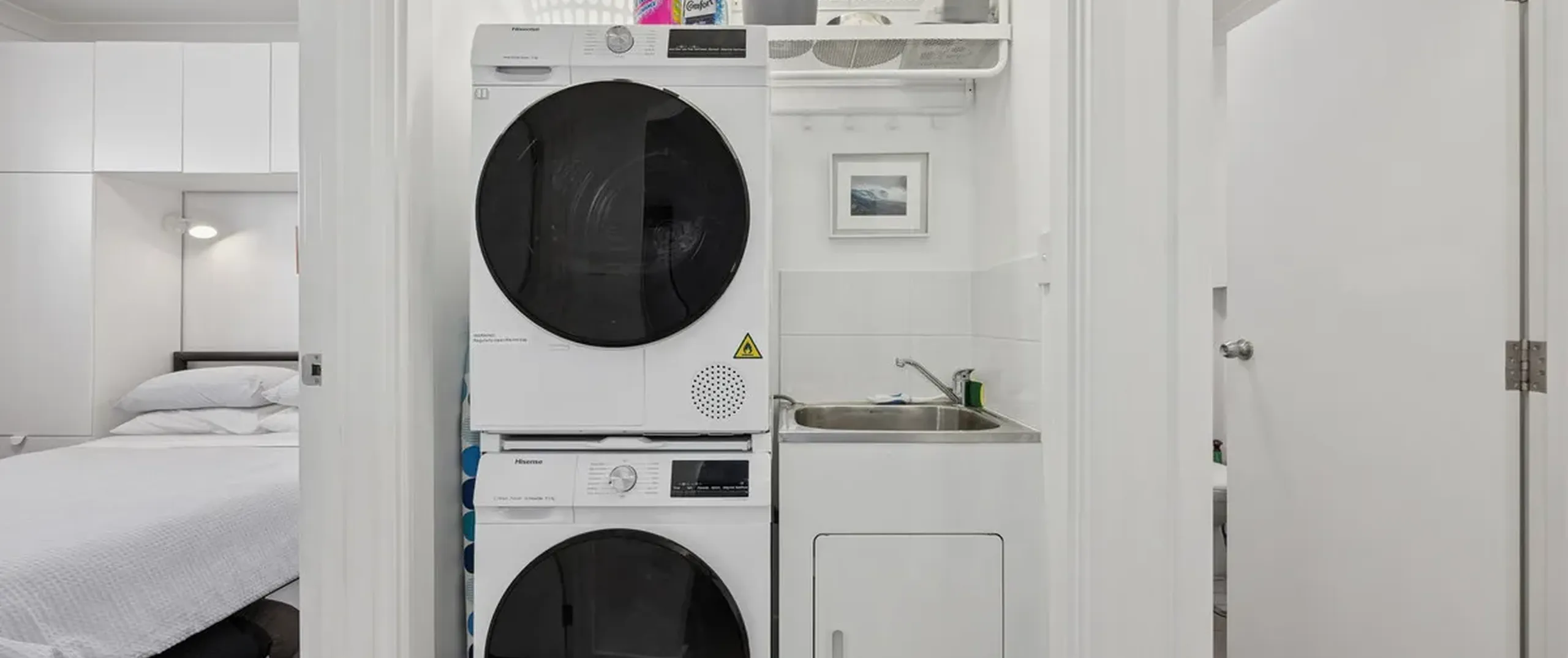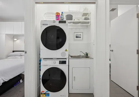 - Convenient European-style laundry with additional linen storage