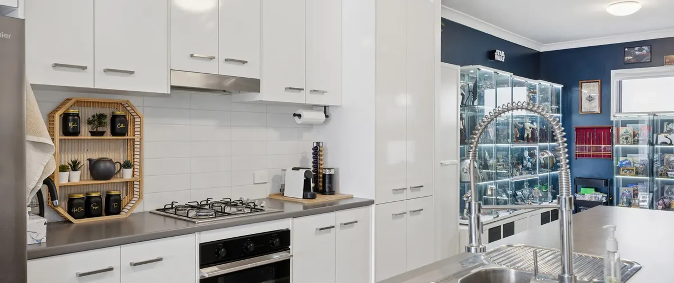 - Stylish kitchen featuring breakfast bar, gas cooktop, stainless steel oven, dishwasher and generous storage/bench space