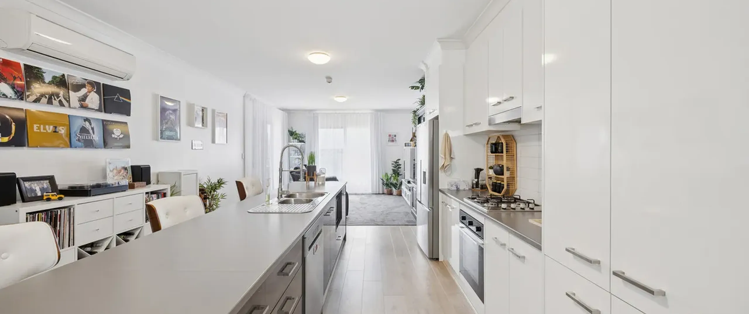 - Light-filled open-plan living, dining and kitchen area complete with split system air conditioning