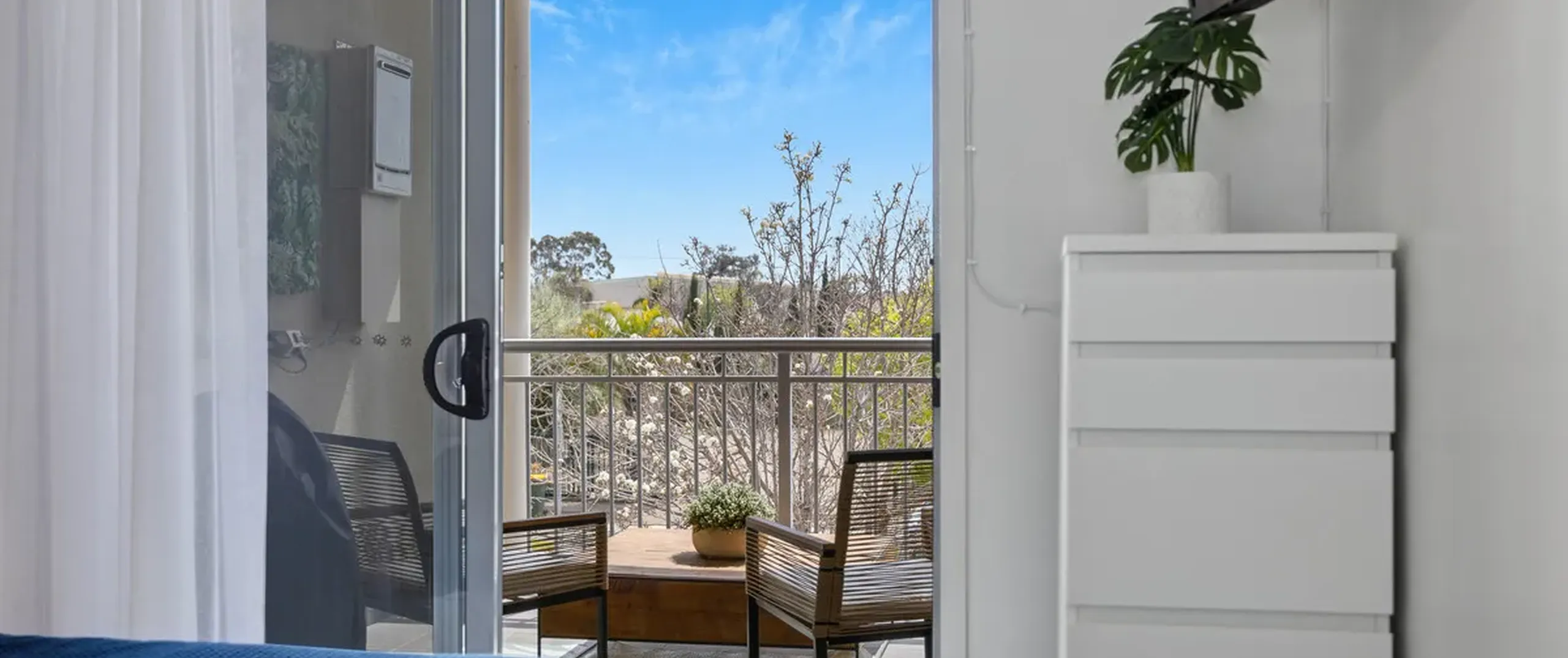 - Two spacious bedrooms, including a main with built-in robe and direct balcony access