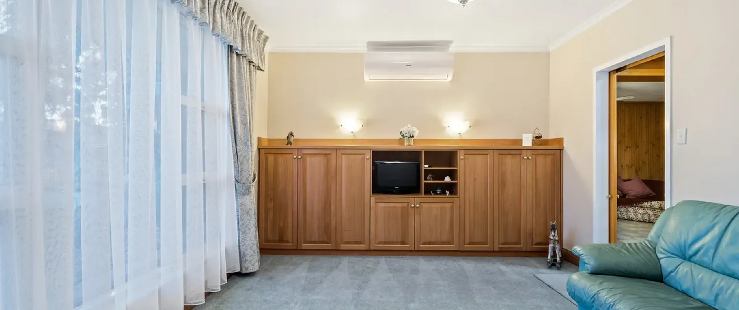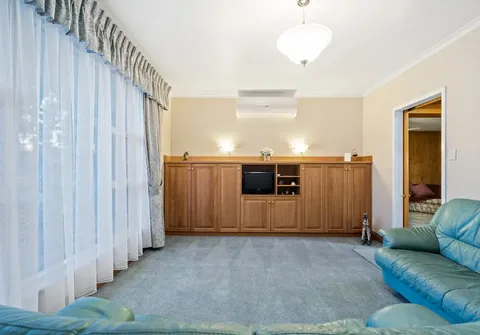 - Formal light filled lounge with sliding doors to add privacy and featuring split system air conditioner and built-in cabinetry