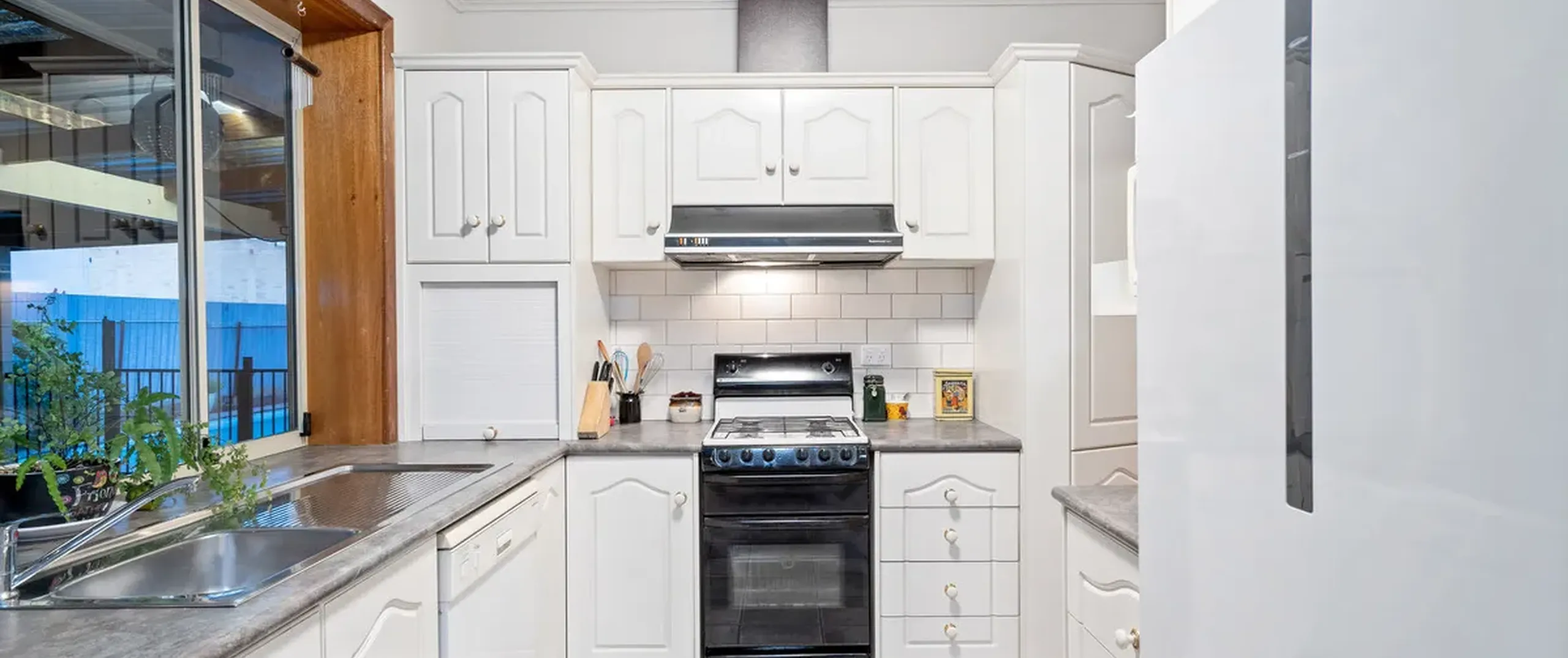 - Charming kitchen with dishwasher, standalone gas cooktop and oven complete with ample bench and cupboard space