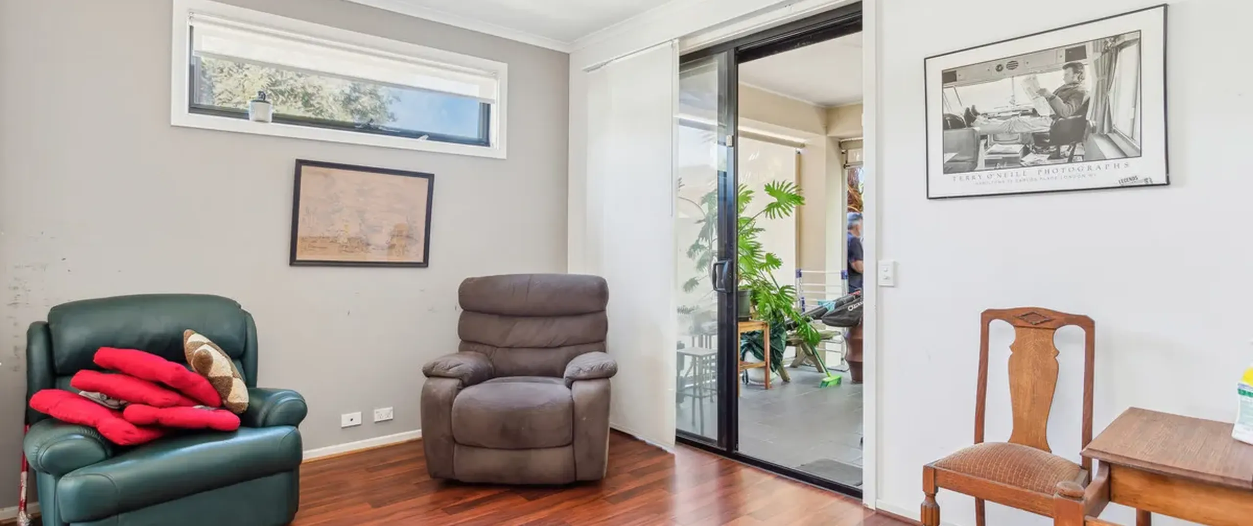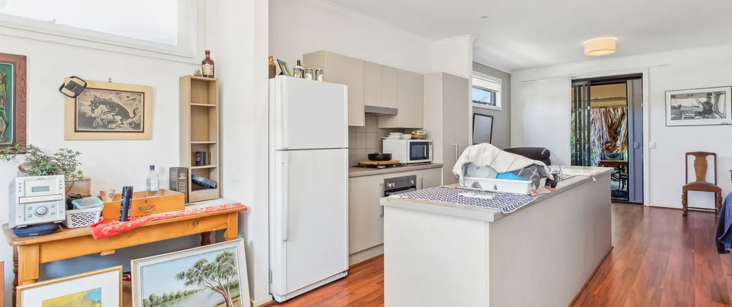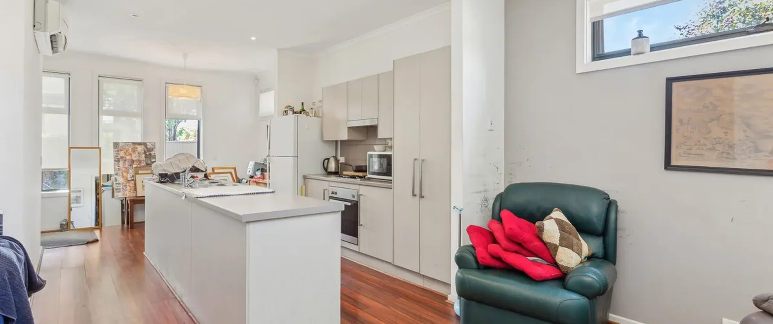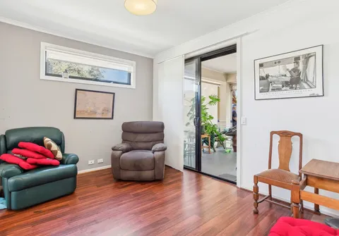 - Generous open living/dining room with timber floors