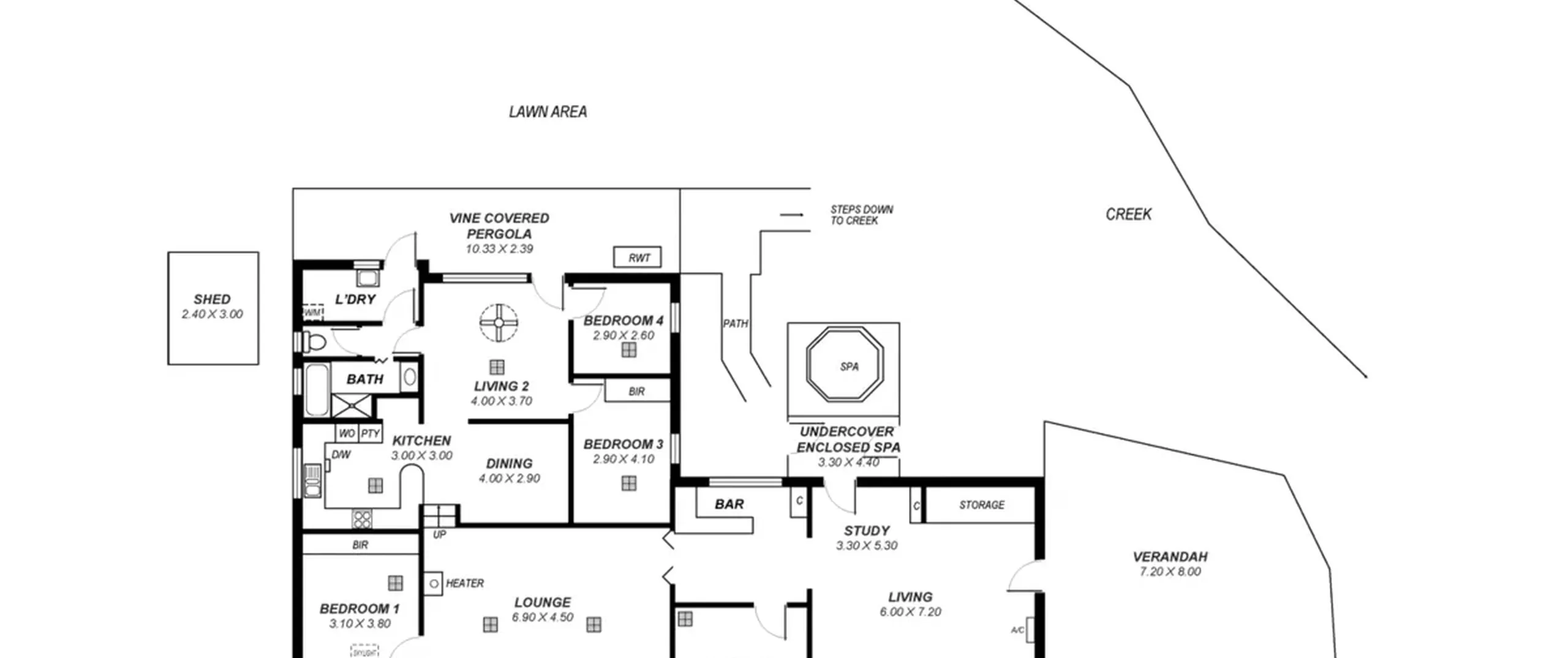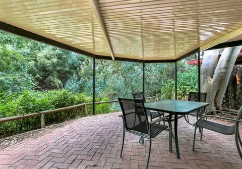 Entertain under the paved pergola area which overlooks the stunningly private gully. Then head down the bridge lined return pathway into the gully which crosses your very own natural creek to truly leave you at one with nature.